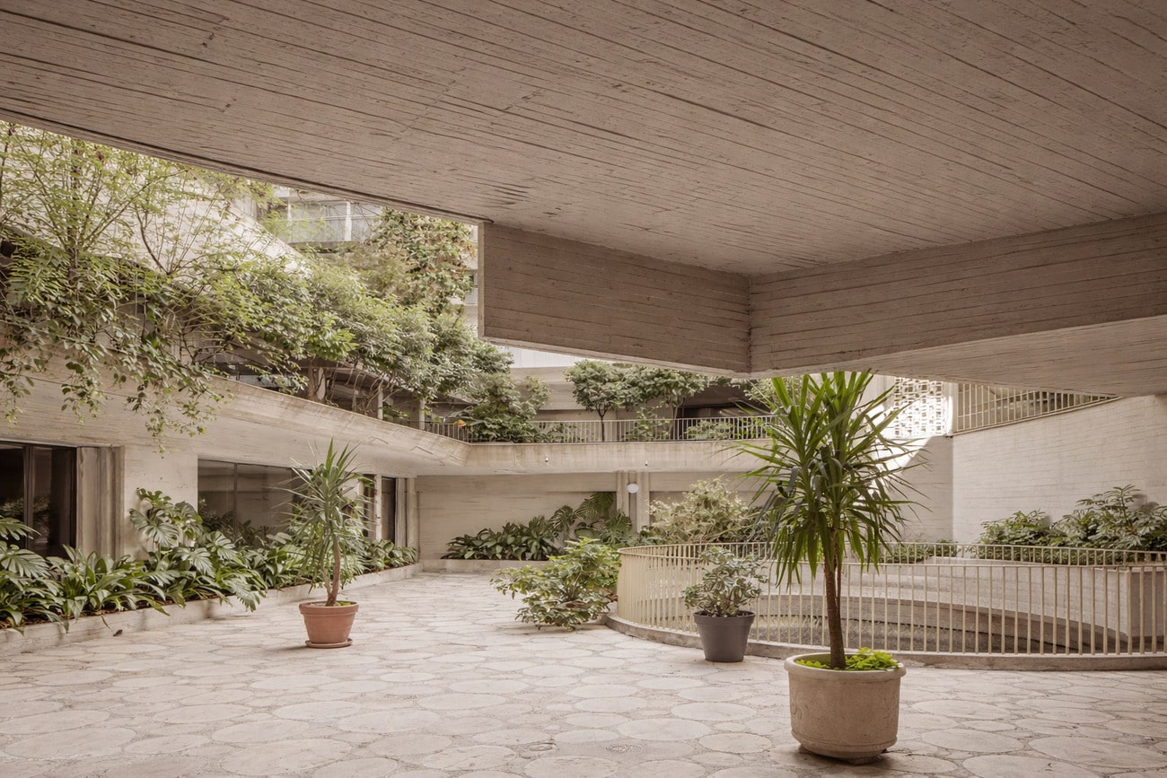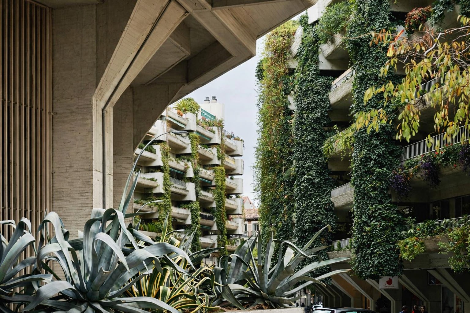 Concebido como un refugio urbano, esta obra maestra del brutalismo rompe con los convencionalismos al fusionar el hormigón con una exuberante vegetación, generando un microclima único en pleno centro de Madrid.