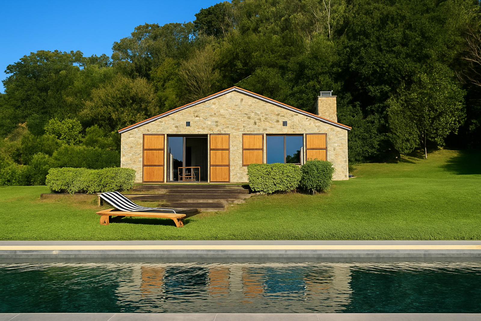 Construida sobre una parcela privada de 1.436 m², la vivienda mantiene la esencia de las antiguas construcciones rurales como la fachada de piedra natural, contraventanas de madera maciza y cubierta a dos aguas, mientras su interior sorprende por la amplitud, la calidez y un confort excepcional.