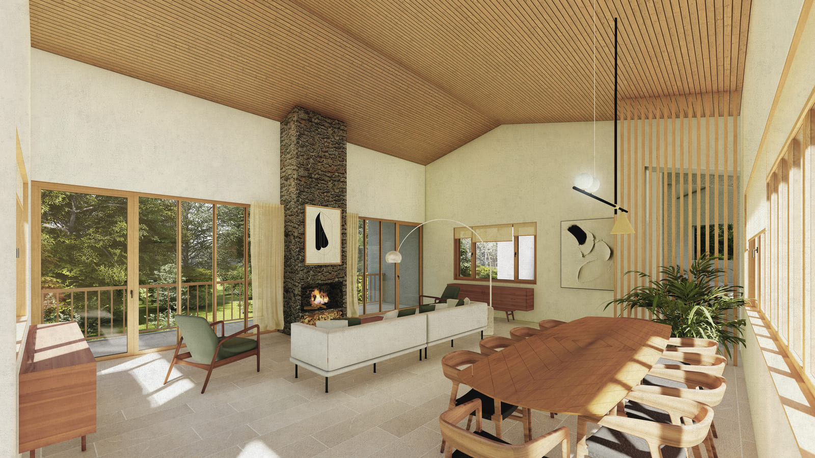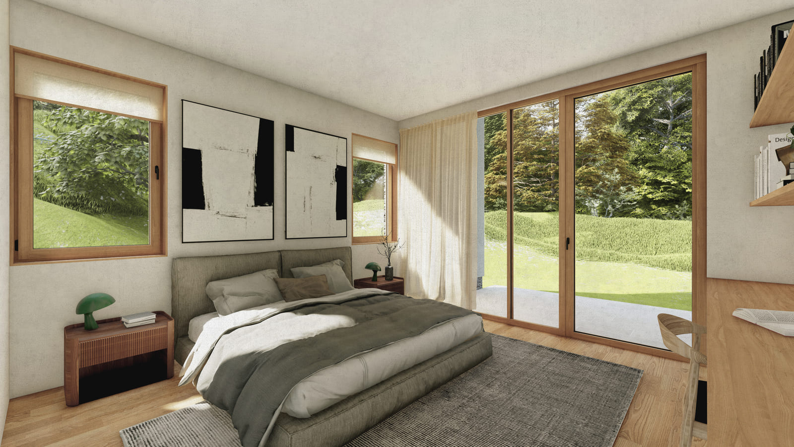 La Mar será una casa con dos cuerpos que se asoman al paisaje a norte. Las cuatro habitaciones con sus respectivos cuartos de baño estarán en la planta baja, y se abrirán directamente al jardín. A la planta primera se accede desde un puente, utilizando el desnivel natural de la parcela maximizando las vistas. El cuerpo occidental cuenta con un amplio espacio de estar y comedor con chimenea interior y exterior, y el oriental cuenta con la cocina y otra galería abierta a las vistas.