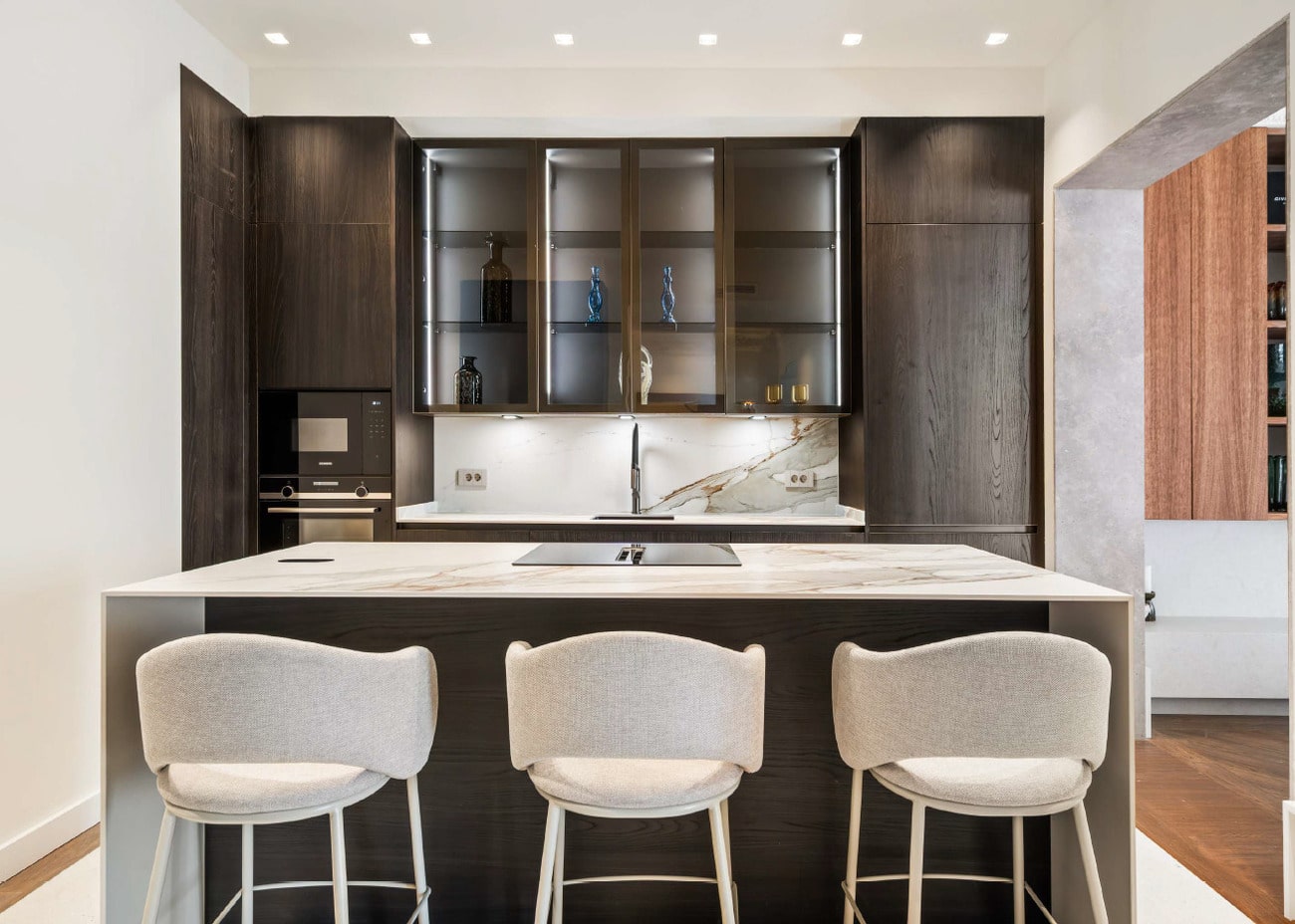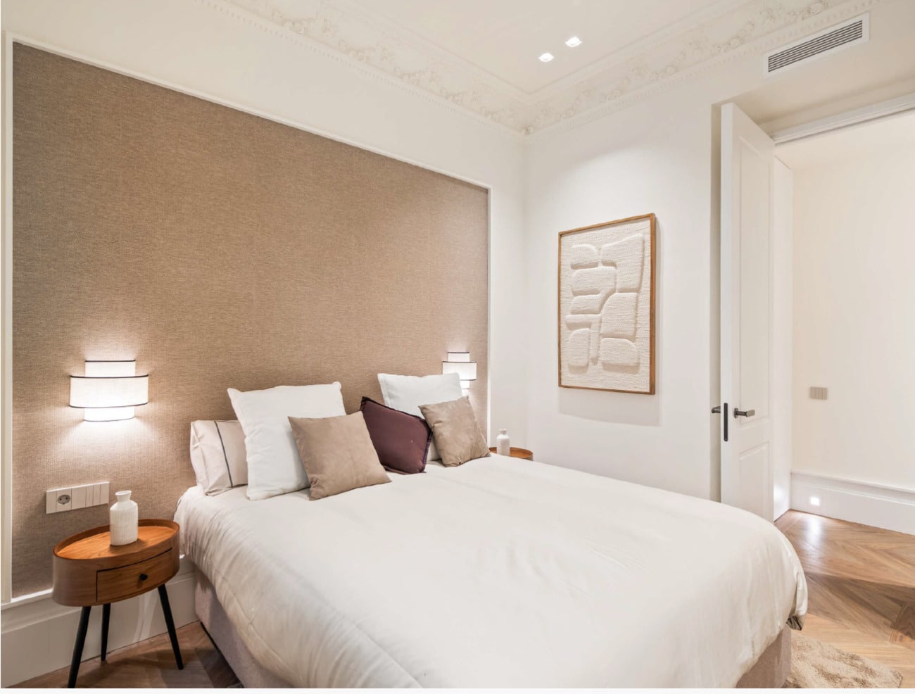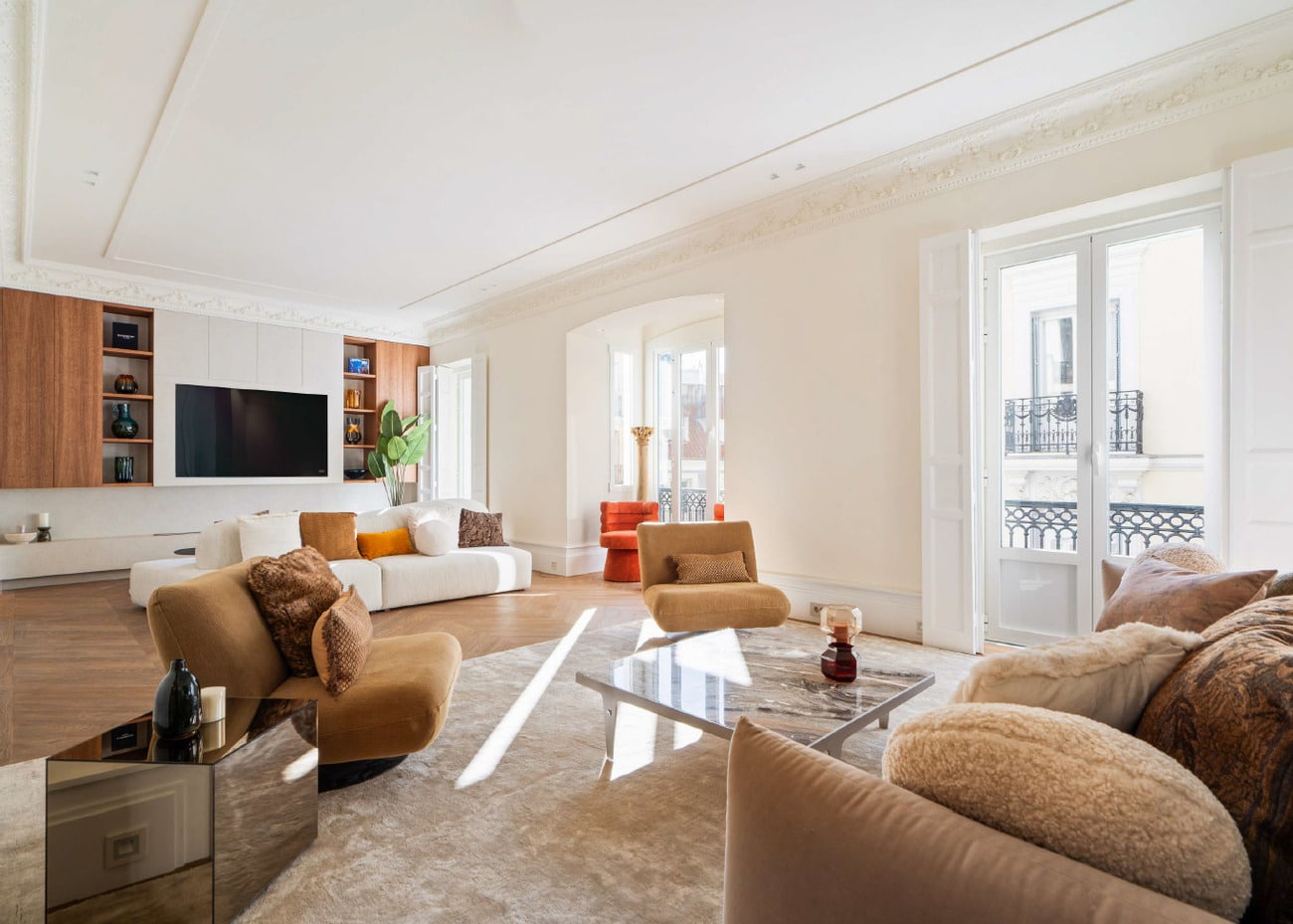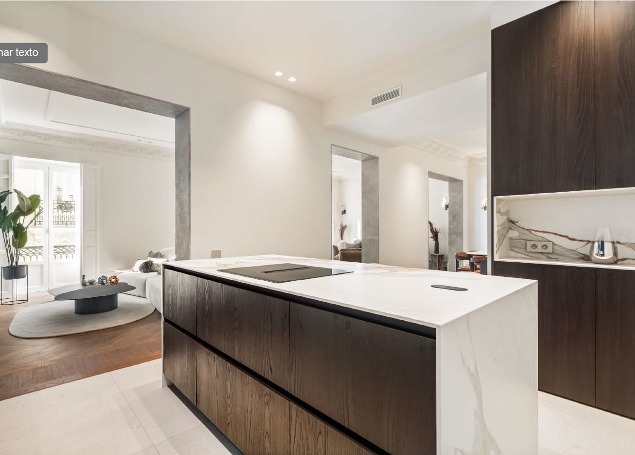 La conservación de esta vivienda, se ha llevado a cabo mediante una reforma integral que respeta su esencia histórica mientras incorpora las más modernas comodidades. Esta transformación ha permitido que la vivienda combine un diseño estéticamente acertado con un alto nivel de funcionalidad y comodidad. Cada rincón de la casa ha sido cuidadosamente diseñado para maximizar la luminosidad y amplitud del espacio, La cocina, de diseño italiano, es una obra maestra Además, el sistema de sonorización Sonos se ha integrado perfectamente, proporcionando un hilo musical envolvente que crea la atmósfera ideal para cada ocasión. Este proceso de reforma ha logrado convertir a la vivienda en un espacio moderno y pleno de comodidades, donde la arquitectura histórica se encuentra con la innovación, garantizando un estilo de vida sofisticado y cómodo en el corazón de Madrid.