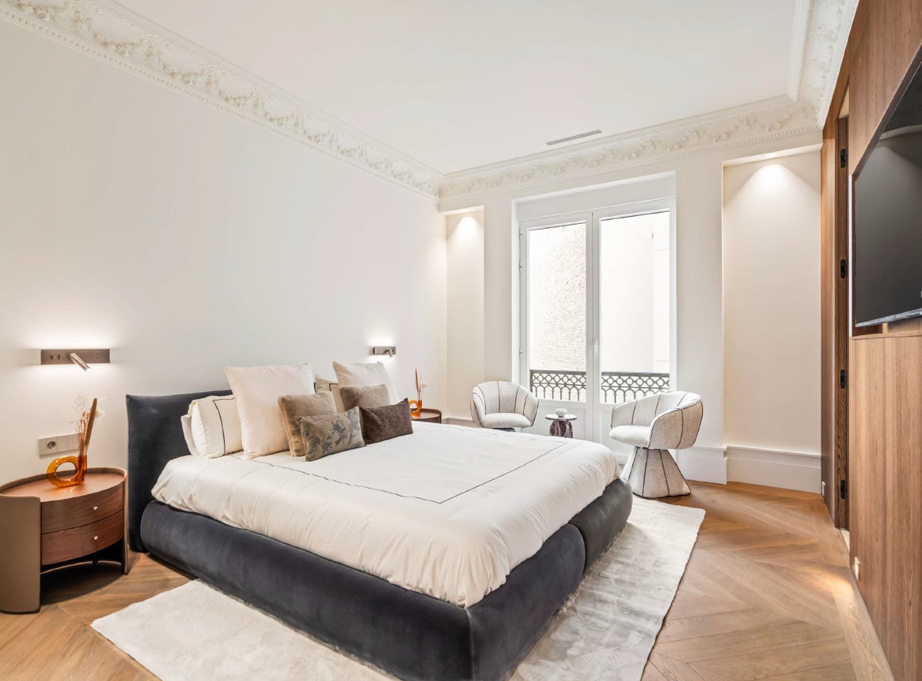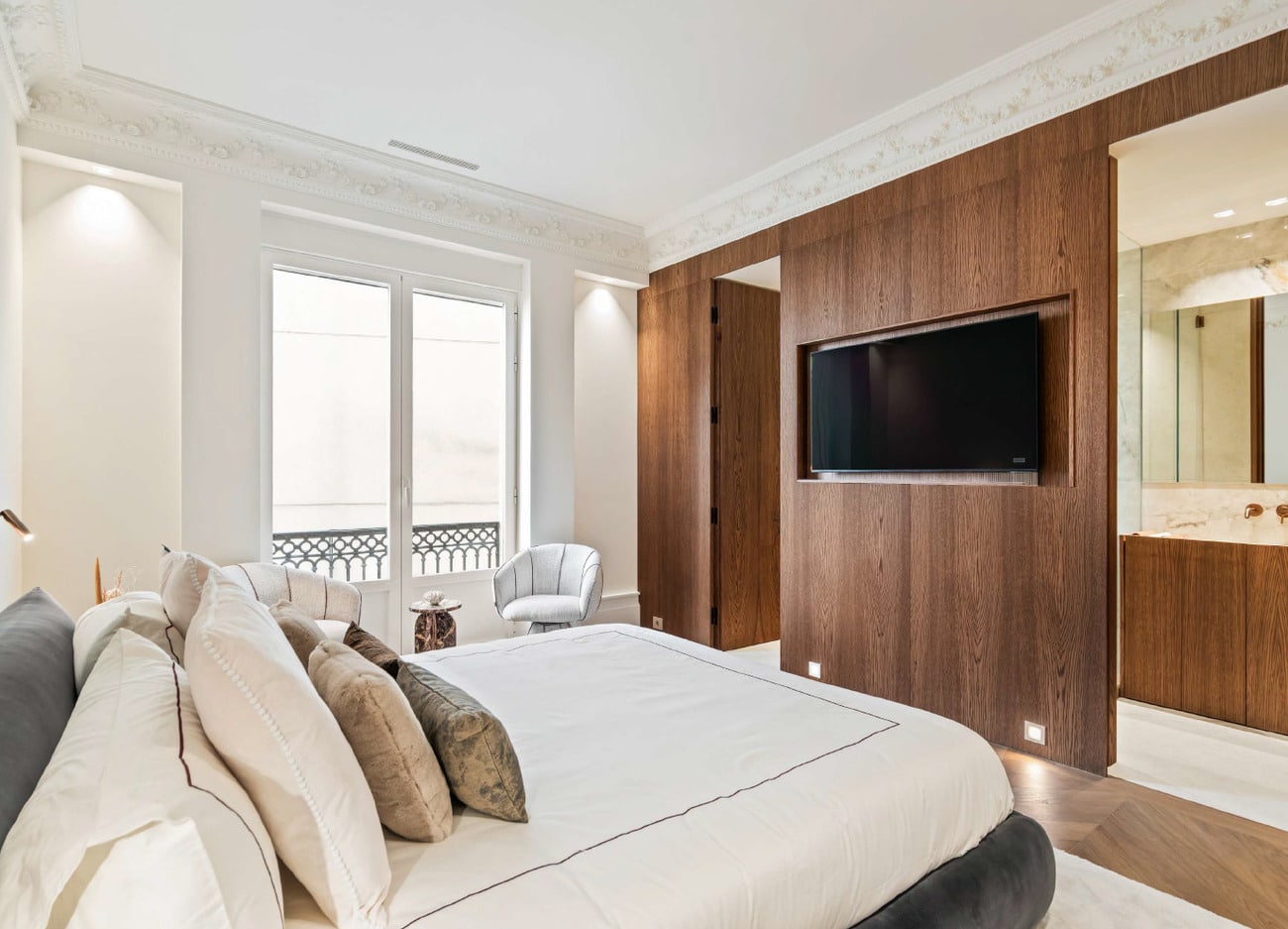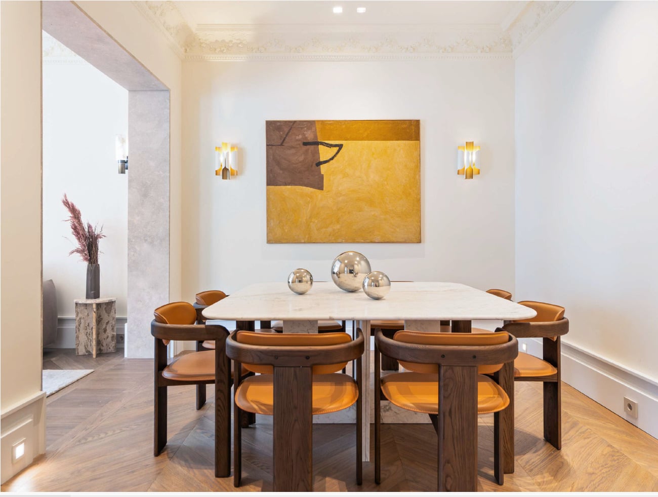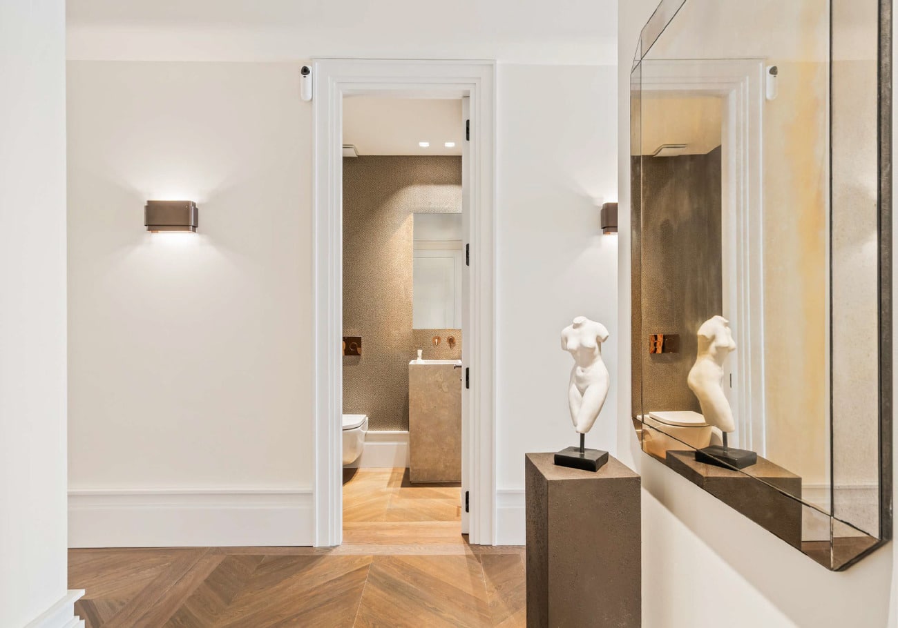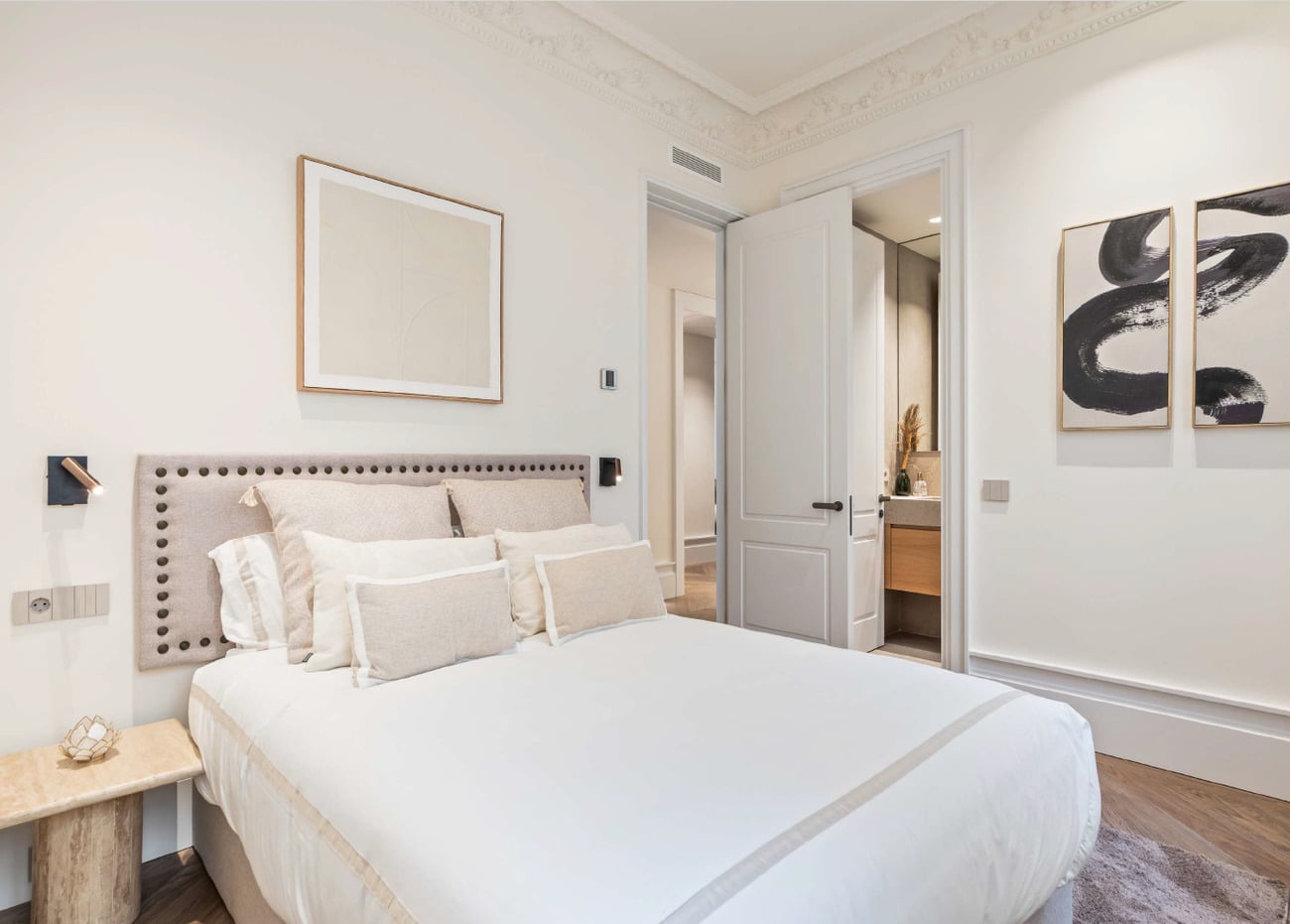 La conservación de esta vivienda, se ha llevado a cabo mediante una reforma integral que respeta su esencia histórica mientras incorpora las más modernas comodidades. Esta transformación ha permitido que la vivienda combine un diseño estéticamente acertado con un alto nivel de funcionalidad y comodidad. Cada rincón de la casa ha sido cuidadosamente diseñado para maximizar la luminosidad y amplitud del espacio, La cocina, de diseño italiano, es una obra maestra Además, el sistema de sonorización Sonos se ha integrado perfectamente, proporcionando un hilo musical envolvente que crea la atmósfera ideal para cada ocasión. Este proceso de reforma ha logrado convertir a la vivienda en un espacio moderno y pleno de comodidades, donde la arquitectura histórica se encuentra con la innovación, garantizando un estilo de vida sofisticado y cómodo en el corazón de Madrid.