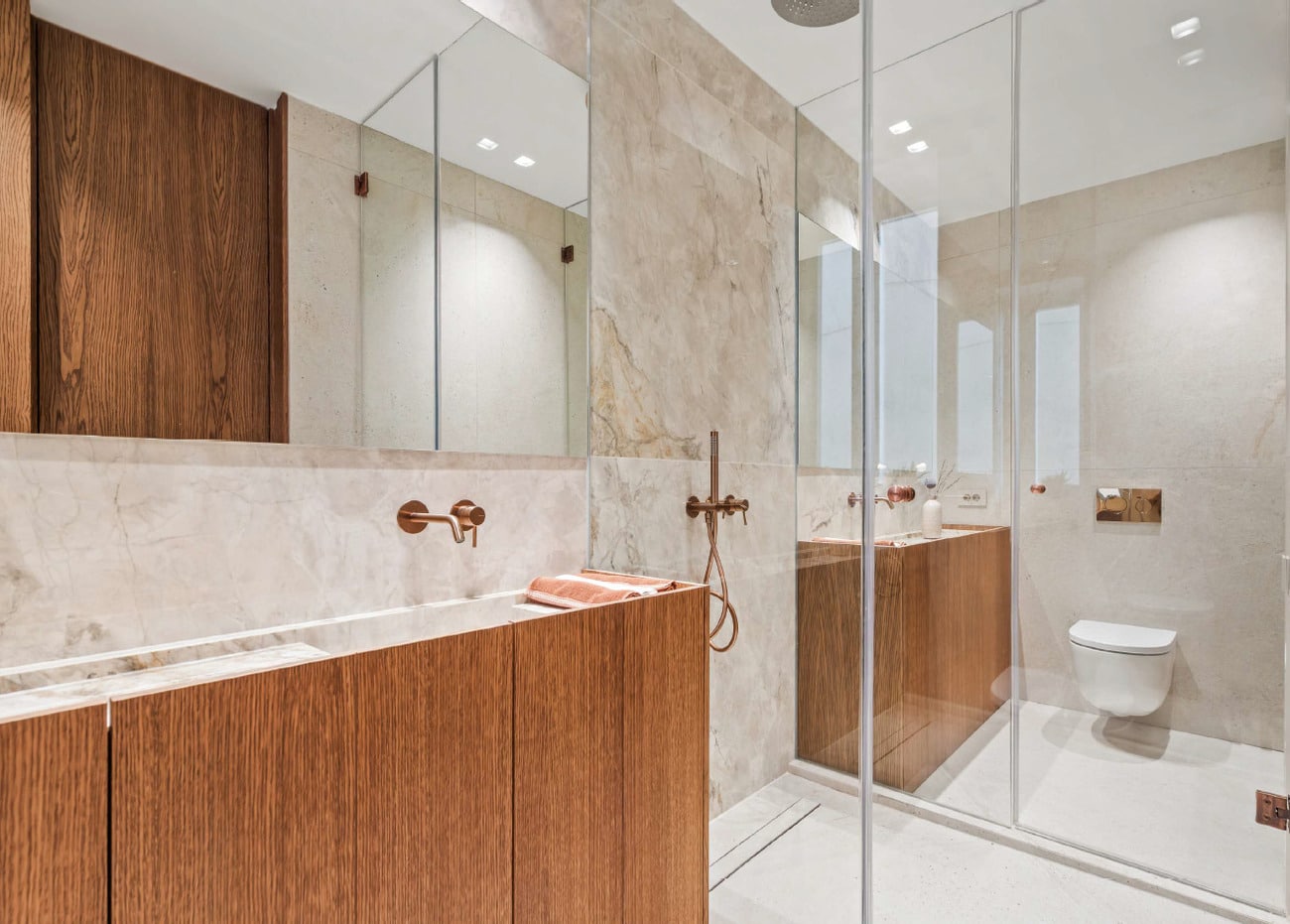 La zona privada está formada por tres dormitorios. El dormitorio principal ofrece un refugio de paz con baño doble en suite de diseño y un vestidor espacioso, mientras que los dos dormitorios restantes también cuentan con su propio baño, garantizando privacidad y comodidad para todos. La vivienda dispone de una práctica zona de lavandería y un aseo independiente.
