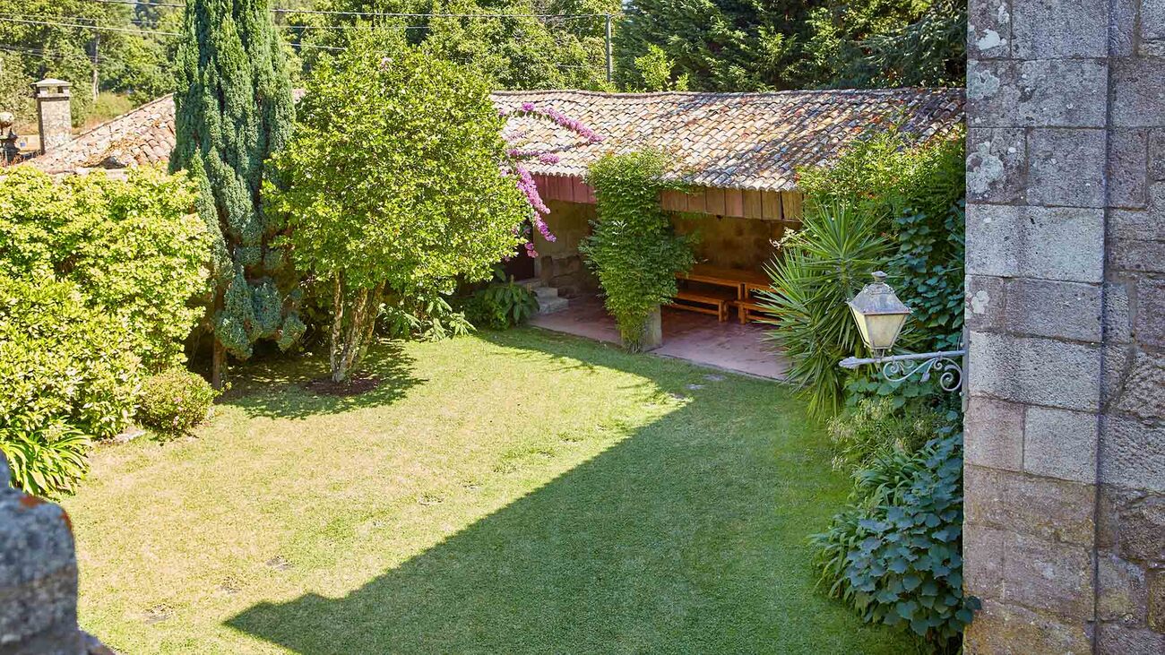 La propiedad goza de una privilegiada orientación sur, una característica especialmente valiosa en el clima atlántico. Esta disposición permite que la luz natural bañe la finca y la vivienda durante todo el día, creando espacios cálidos, luminosos y protegidos del viento del norte. La suave ladera sobre la que se asienta el pazo potencia esta exposición solar, aportando una sensación continua de claridad y bienestar. Tanto la solana como las estancias principales disfrutan de esta orientación, lo que convierte el conjunto en un lugar excepcional para vivir el exterior, relajarse y contemplar el paisaje del Val Miñor en su máxima expresión.