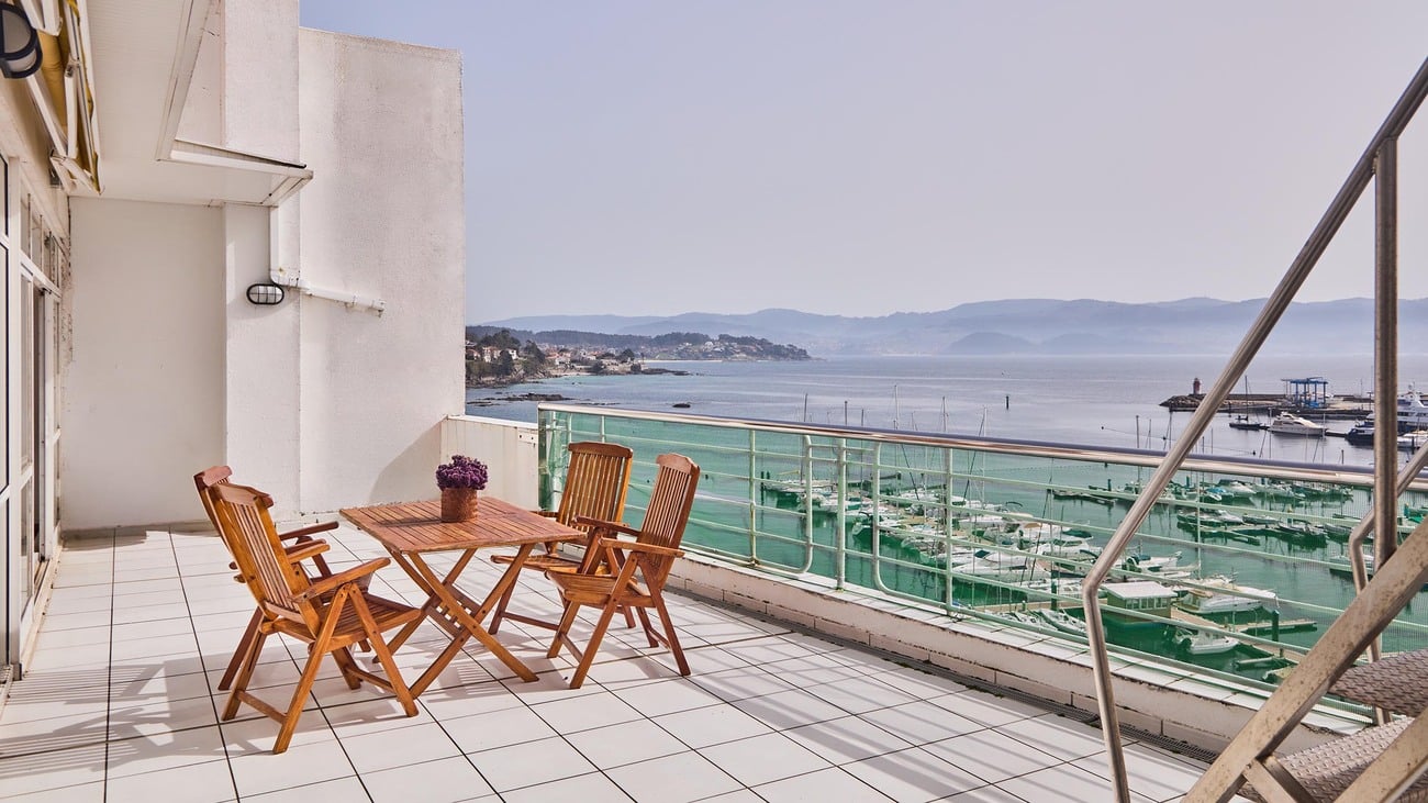 En primera línea del puerto de Sanxenxo, encontramos este maravilloso ático para reformar en una de las ubicaciones más codiciadas de la costa gallega, con vistas privilegiadas sobre la ría de Pontevedra y una conexión permanente con el paisaje marítimo.