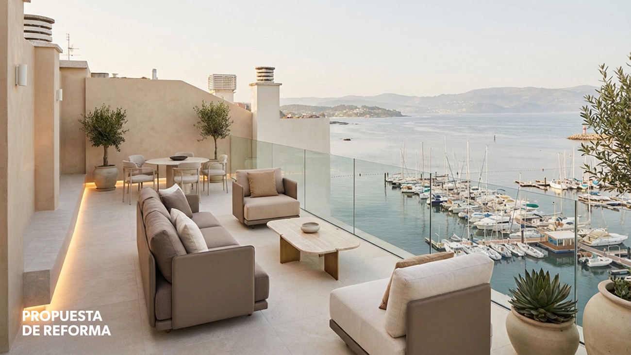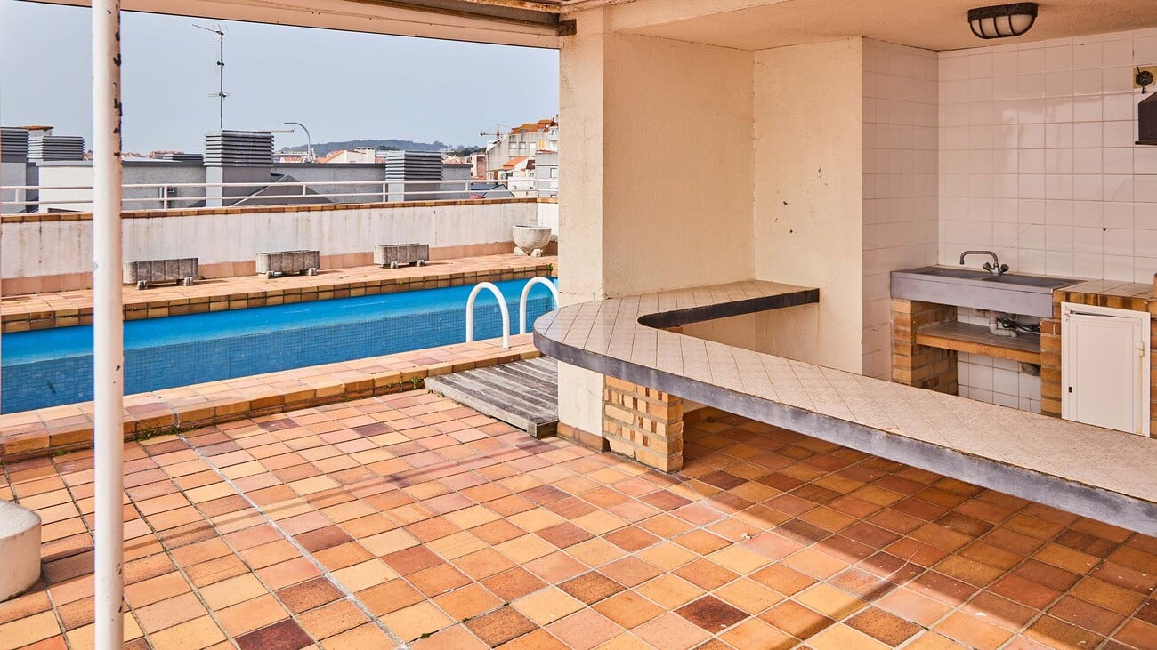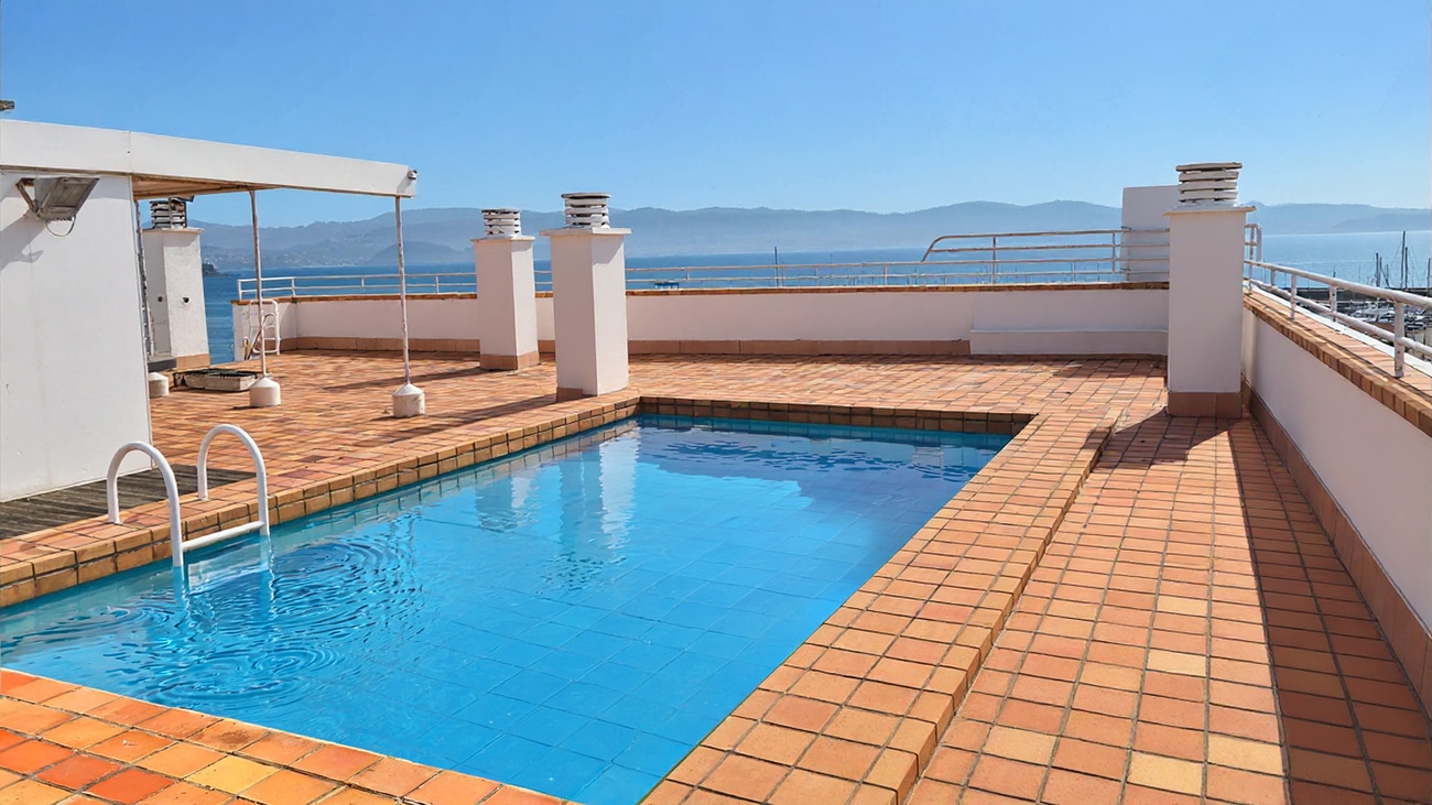 En la planta superior, conectada mediante una escalera privada, la propiedad se abre a una extraordinaria terraza concebida como una auténtica prolongación habitable frente al mar. Este espacio exterior cuenta con piscina, zona de barbacoa y baño, configurando un escenario excepcional para disfrutar del entorno y de las vistas sobre el puerto de Sanxenxo.