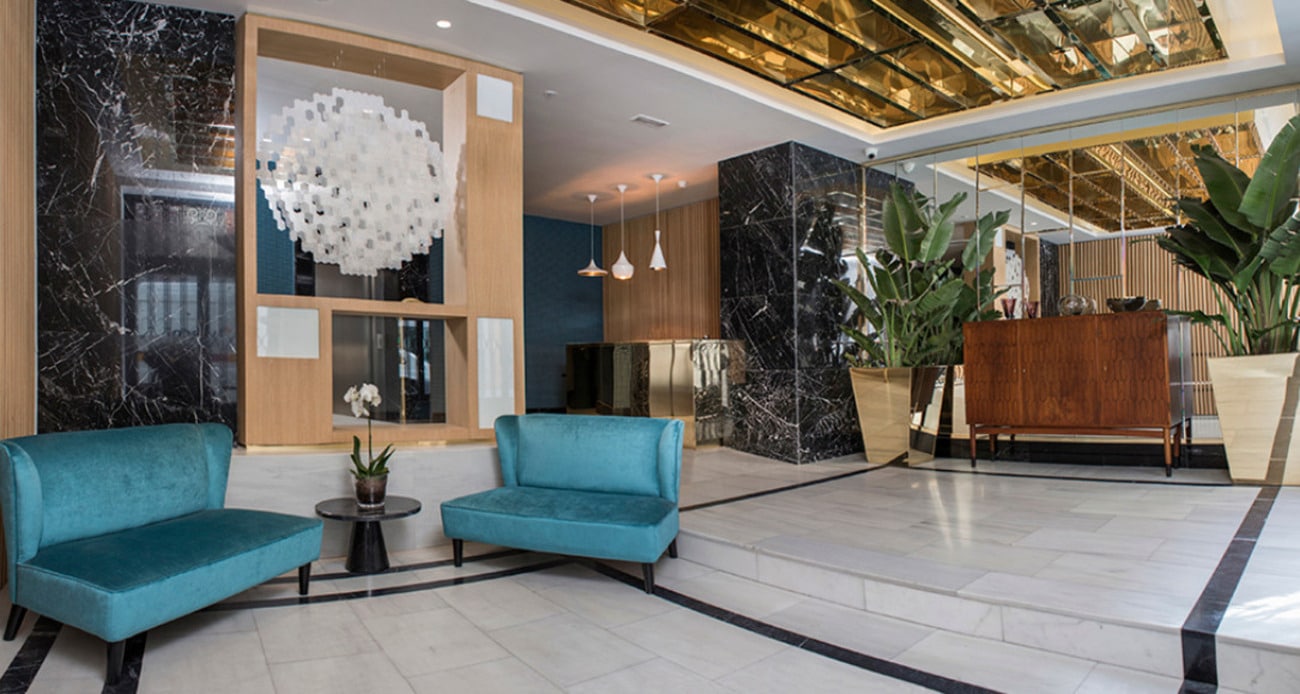 Los materiales —mármol, madera y panelados ejecutados con precisión— construyen un lenguaje coherente donde tradición y modernidad conviven en equilibrio, dando forma a un edificio que trasciende lo residencial para convertirse en una experiencia de habitar.