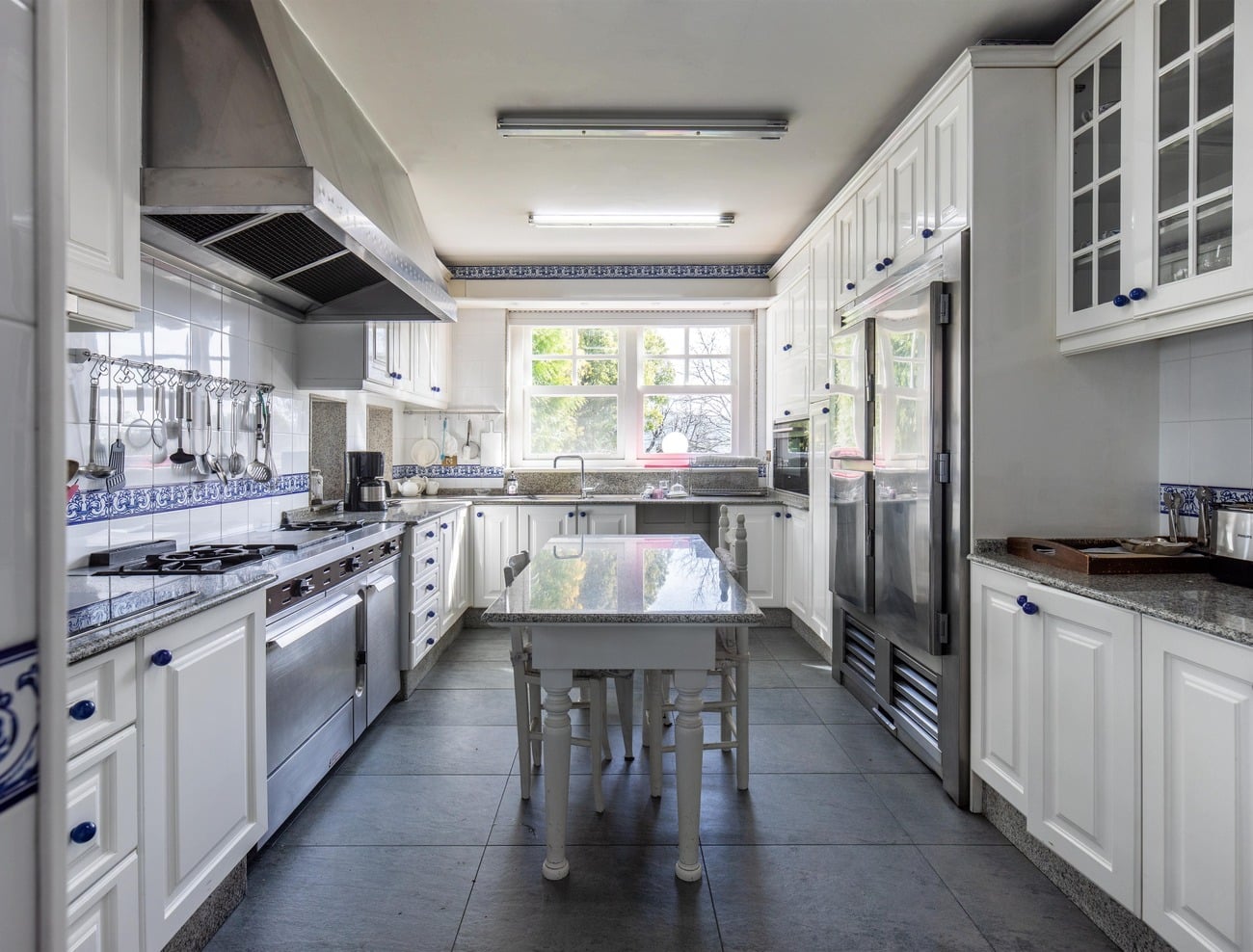 La cocina, amplia y funcional, incorpora zona de trabajo y despensa, reforzando el carácter práctico de la vivienda sin renunciar a la discreción.