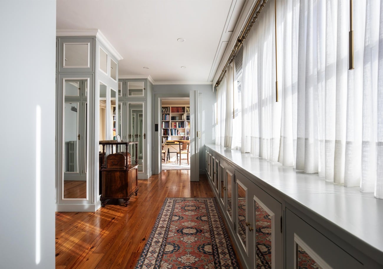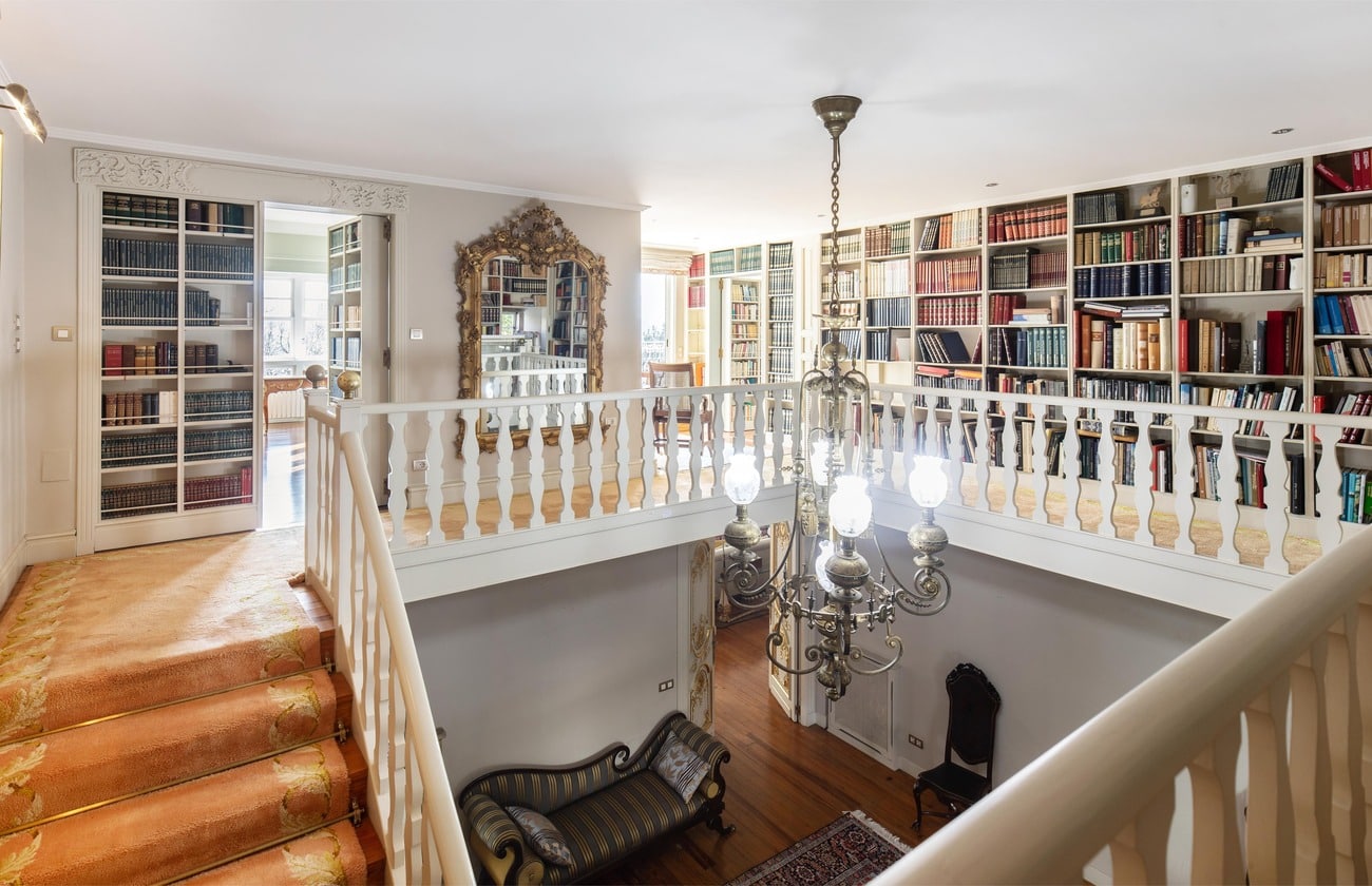 En la planta superior, una librería perimetral realizada a medida ordena el espacio con una intervención singular: sus puertas ocultas dan acceso a las distintas estancias, aportando continuidad visual y un lenguaje arquitectónico cuidado.