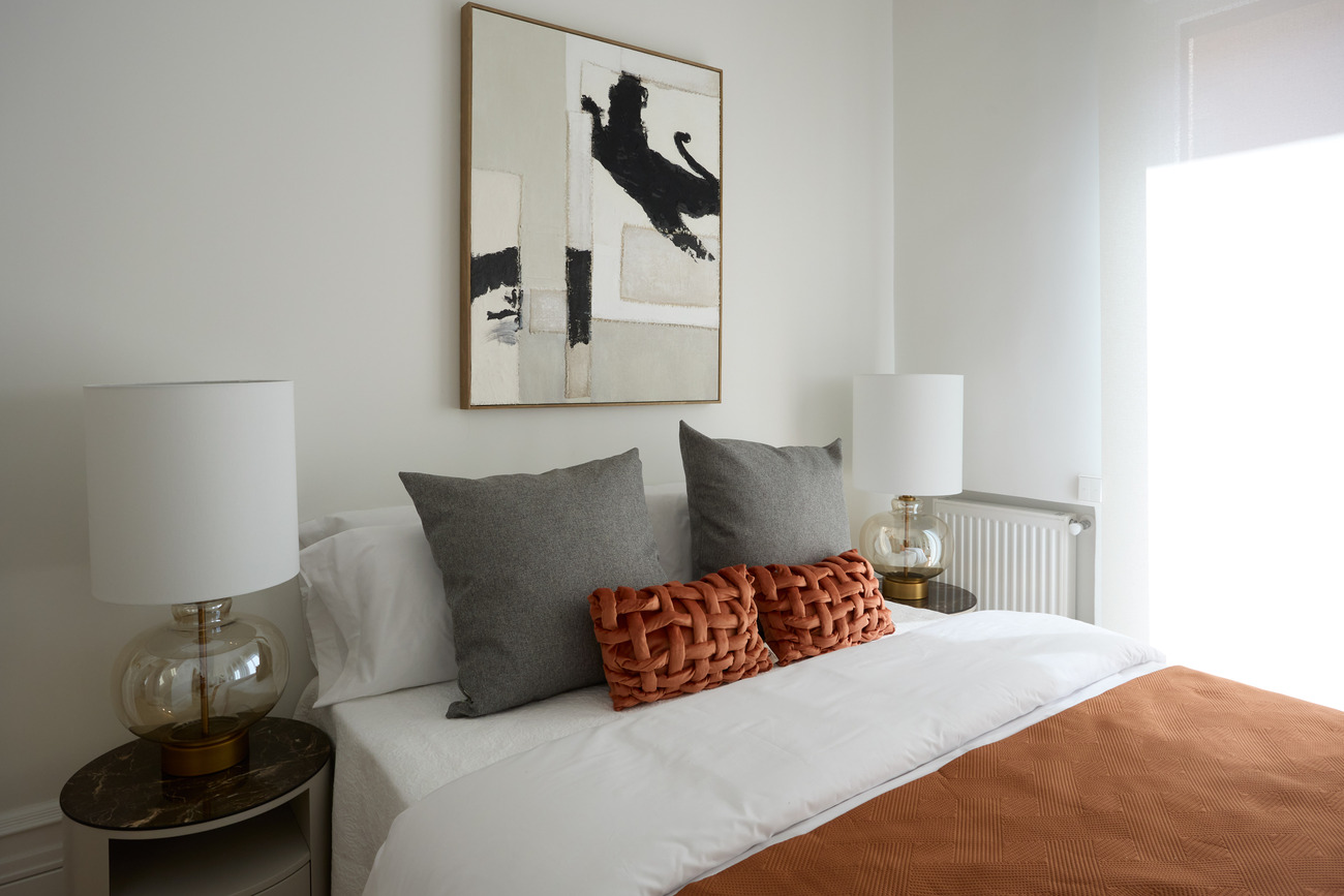 Los otros dos dormitorios, de proporciones equilibradas, comparten un elegante cuarto de baño.