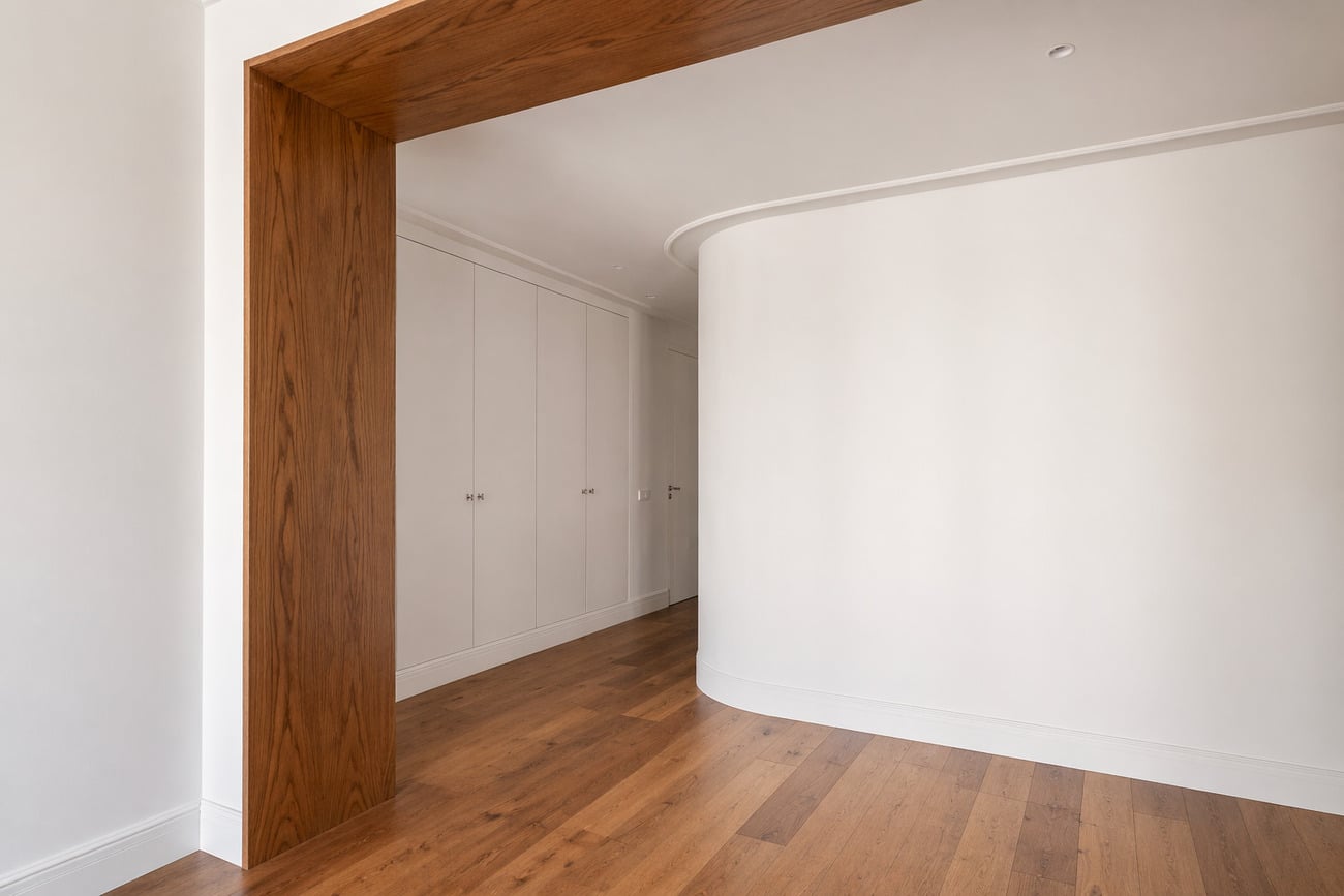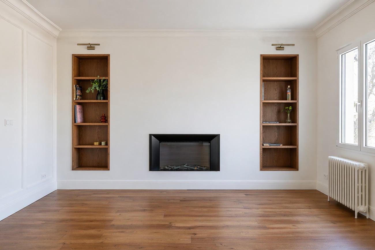 En un edificio clásico del siglo XX, situado en la emblemática calle Ríos Rosas, esta vivienda se abre con amplitud hacia los jardines del Colegio Italiano, regalando una perspectiva poco habitual: verde, profundidad y el cielo de Madrid como telón de fondo.