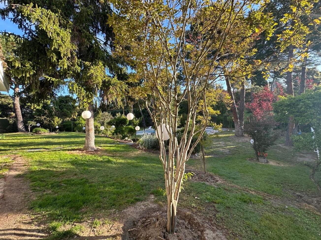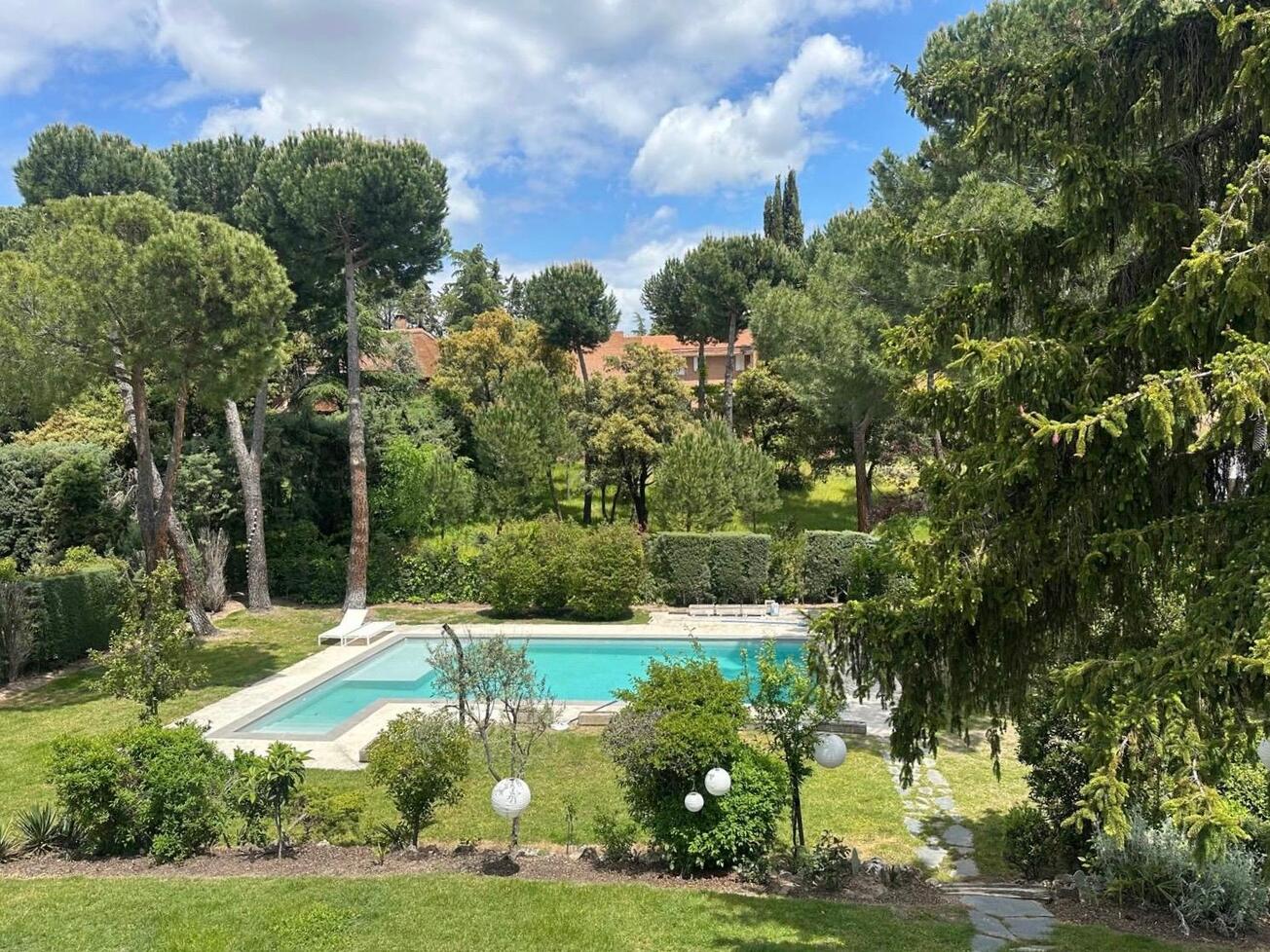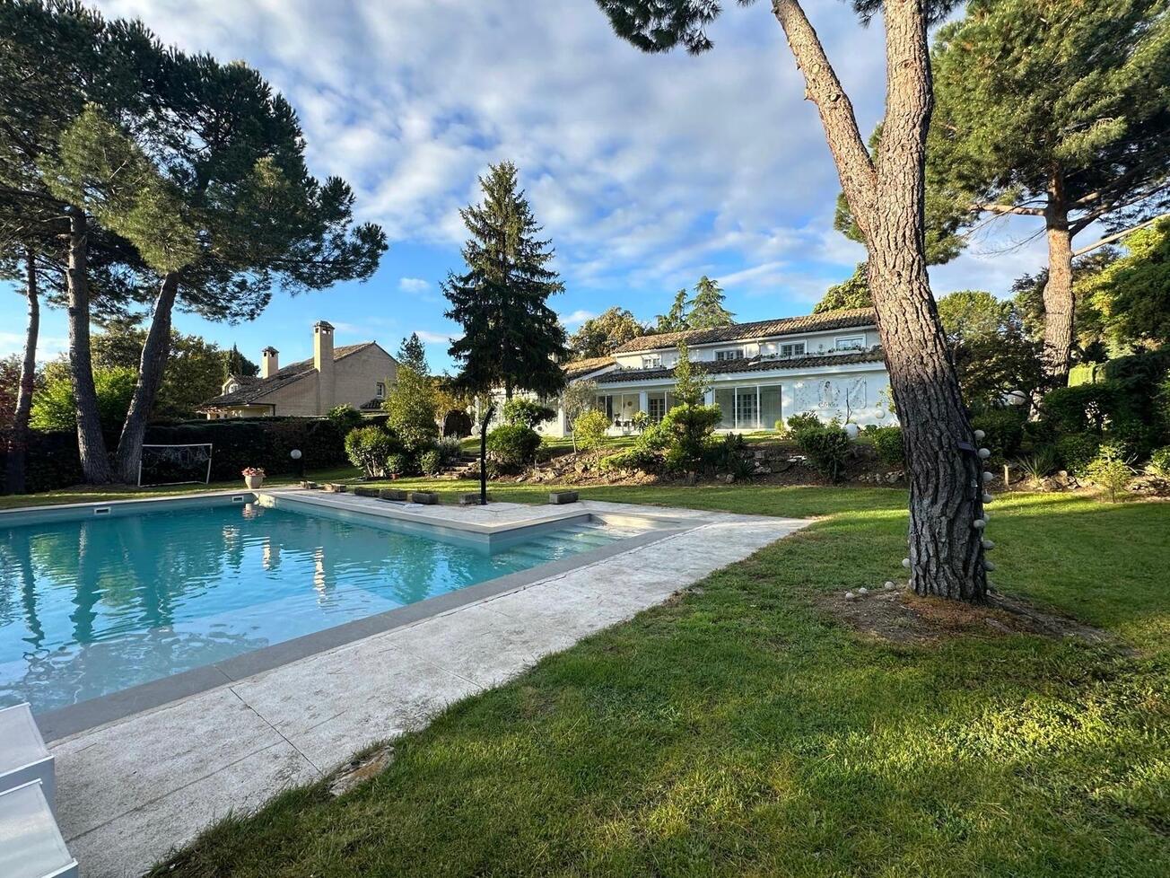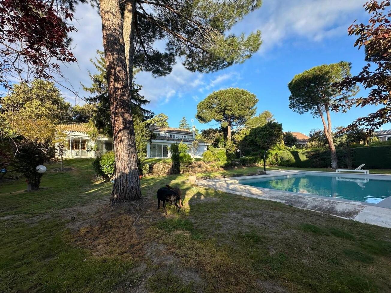 La arquitectura, de líneas claras y proporciones equilibradas, favorece una relación fluida entre interior y exterior. Las estancias se abren visualmente al jardín, potenciando la entrada de luz natural y aportando una sensación continua de espacio y bienestar. Se integra con naturalidad en una parcela generosa, donde el exterior adquiere un protagonismo especial. El jardín maduro, la vegetación consolidada y la presencia de una gran piscina crean una atmósfera de auténtico retiro, ofreciendo un espacio íntimo y exclusivo.