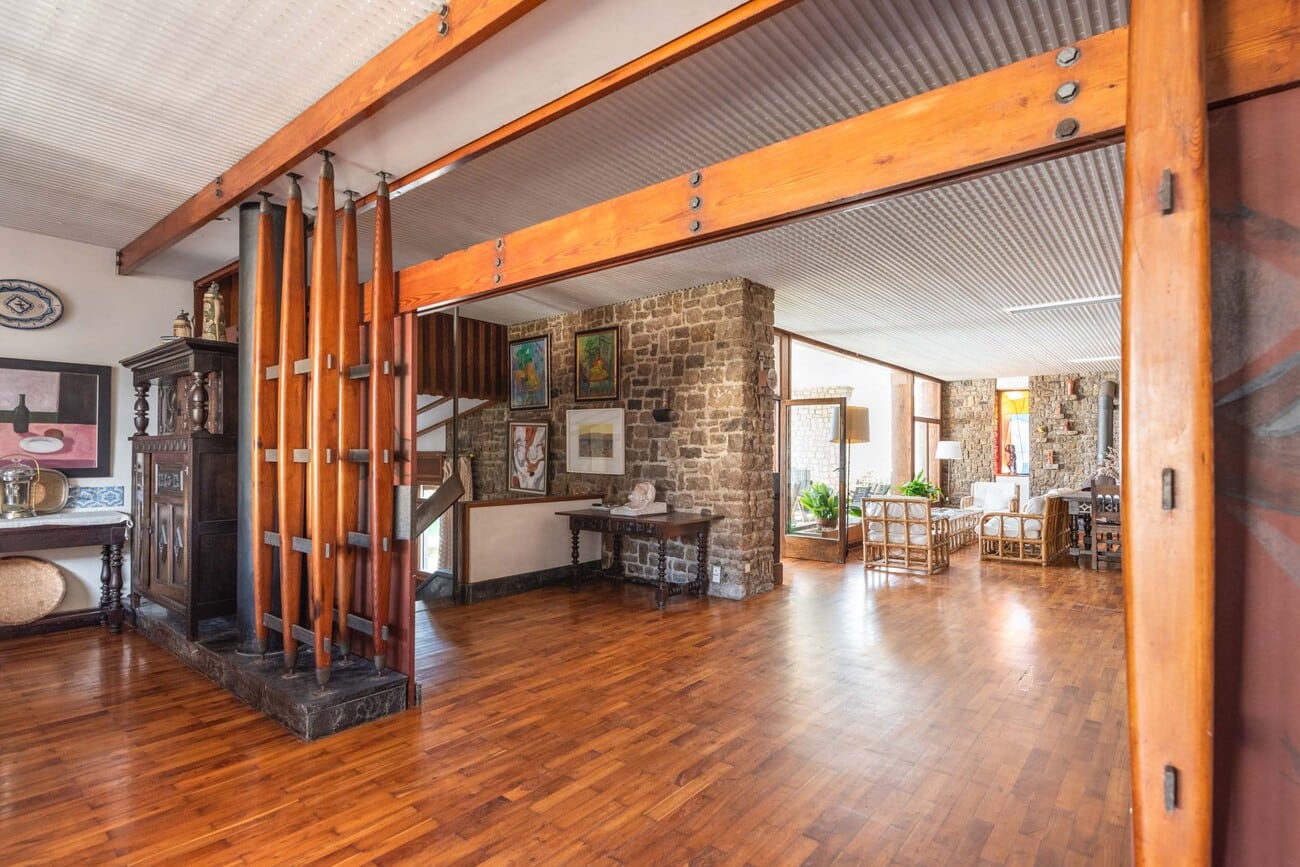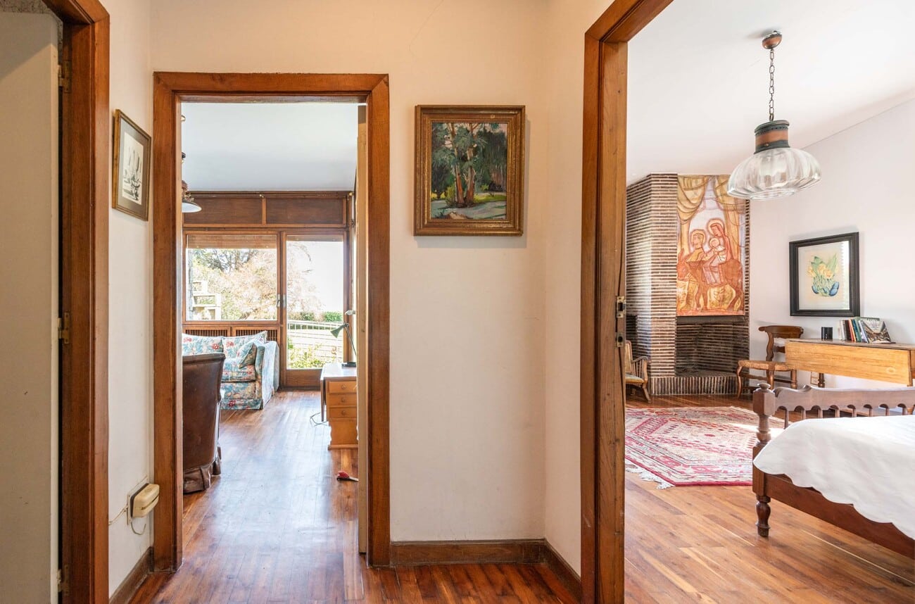 A partir de este punto, la casa despliega una secuencia espacial rica, fluida y cuidadosamente articulada, propia de una residencia concebida con una escala poco común y una relación constante entre arquitectura, luz y paisaje.