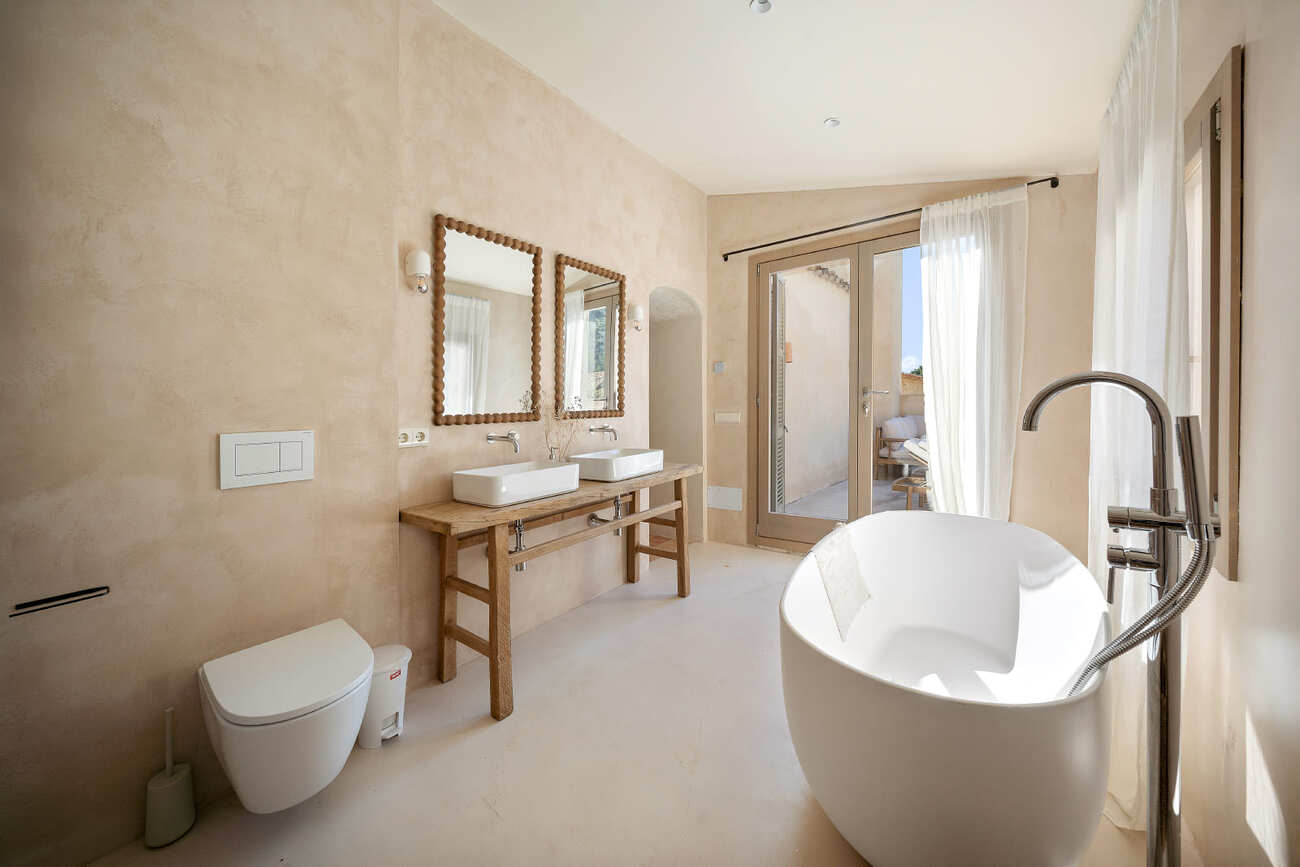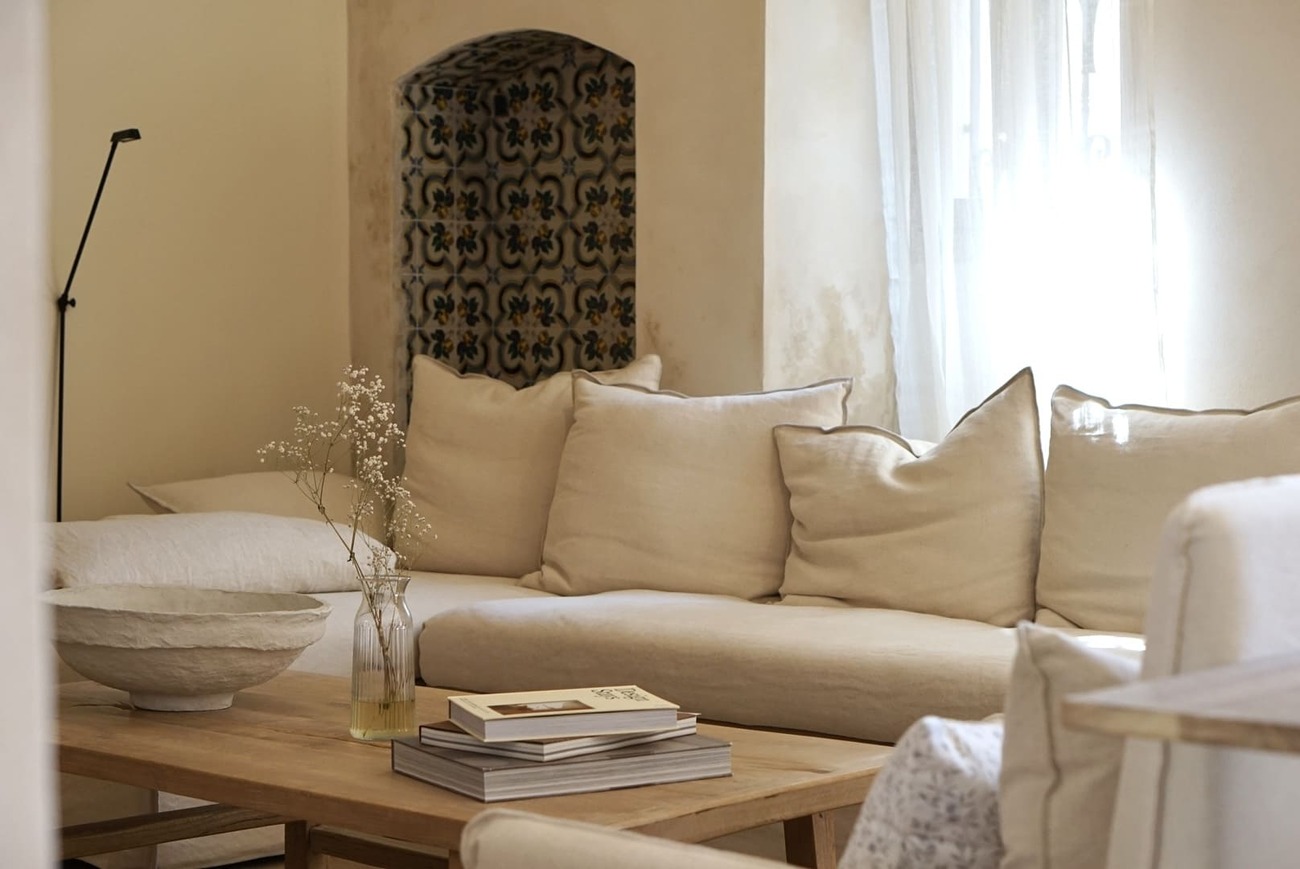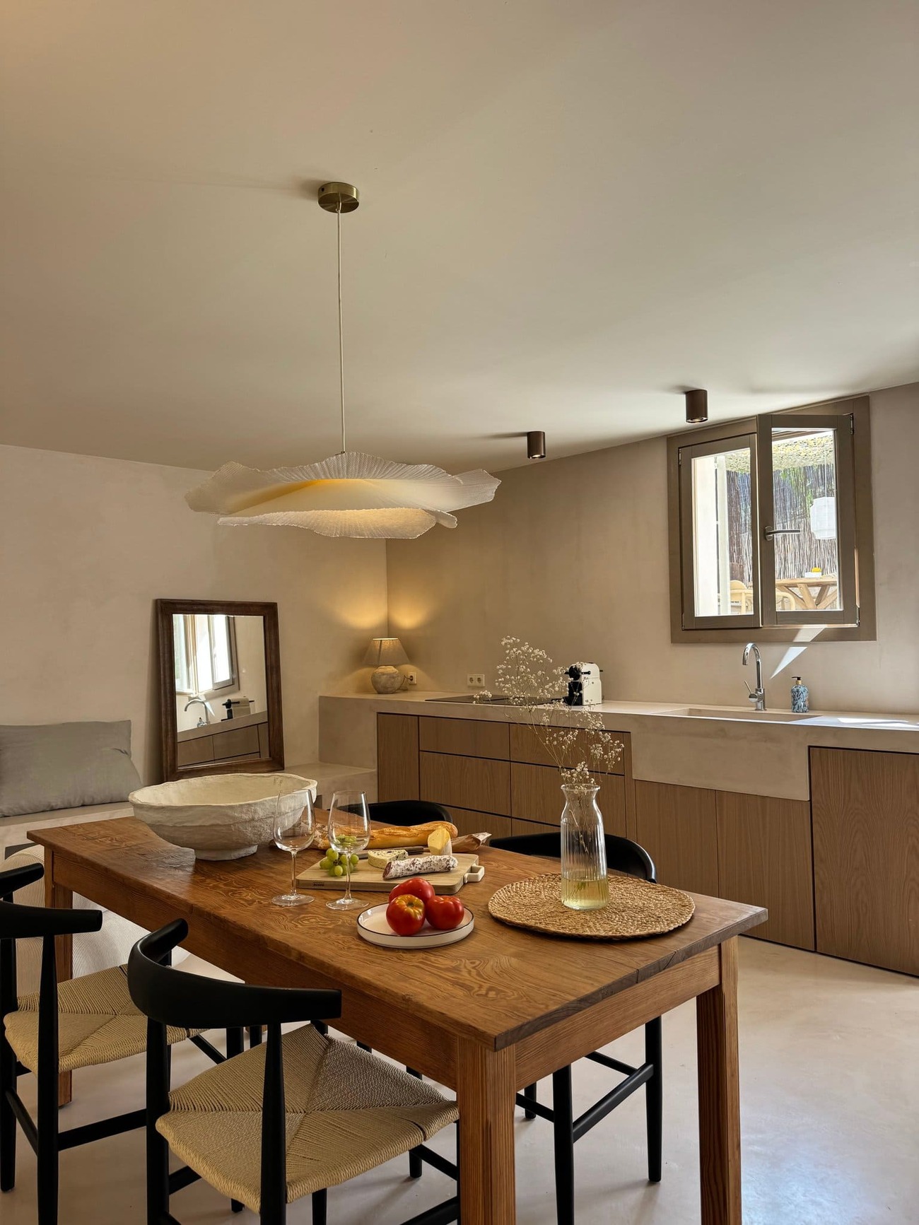 Ubicada en pleno corazón de Caimari, la propiedad ha sido restaurada recientemente con una sensibilidad exquisita, donde cada elemento ha sido cuidadosamente elegido para honrar la tradición local y, al mismo tiempo, introducir una estética contemporánea que aporta serenidad, belleza y un confort absoluto.
