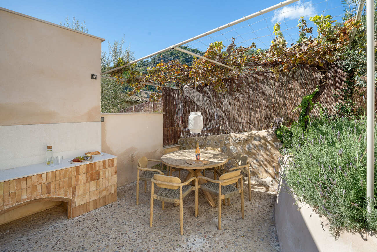 La casa gira en torno a un elegante patio en varios niveles que conecta de forma orgánica los espacios interiores con las terrazas exteriores. Pensada para disfrutarse en cualquier época del año, ofrece un estilo de vida relajado y conectado con la naturaleza, con vistas al entorno montañoso de la Tramuntana y un ambiente que invita a la desconexión.