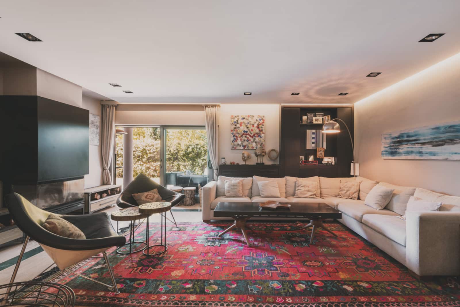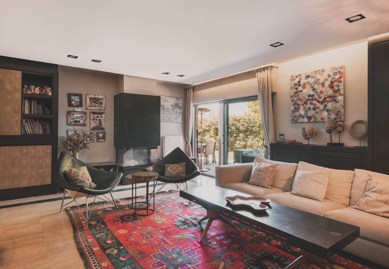 El jardín se convierte en una prolongación natural del interior, abraza la casa perimetralmente y crea una sensación constante de apertura y conexión con el verde, aportando continuidad visual y serenidad a cada estancia.