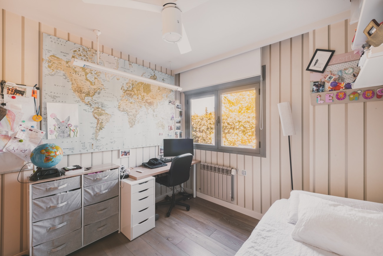 Se trata de una estancia muy versátil, que puede adaptarse fácilmente a diferentes necesidades, como despacho, sala de estar, cuarto de juegos o espacio polivalente.