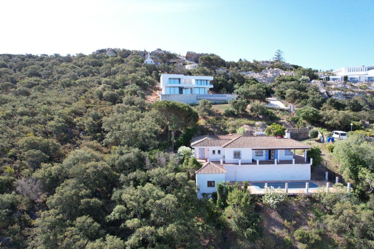 Ubicada en la codiciada zona de Atlanterra conocida como Los Alemanes, esta residencia de estilo mediterráneo se asienta junto al Parque Natural del Estrecho, donde la calma y la naturaleza son protagonistas.