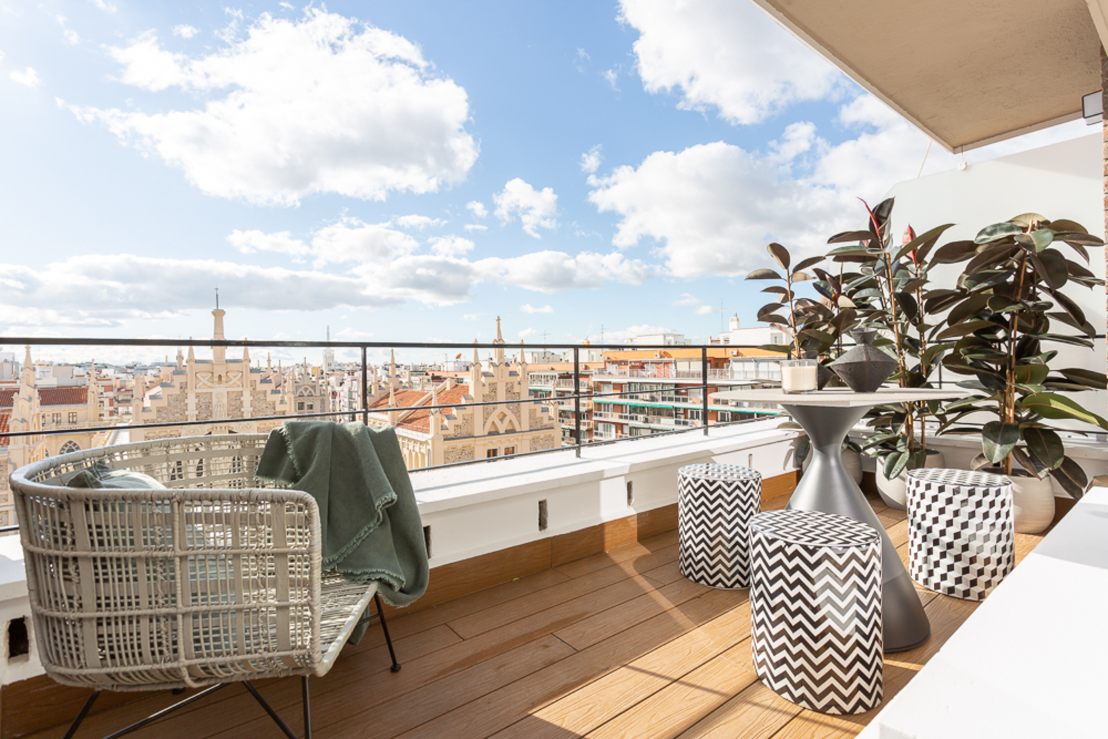 Exclusiva propiedad con terraza recién reformada y amueblada al detalle, situada a dos pasos de una de las arterias más demandadas de la Milla de Oro, en la séptima planta. Espectaculares vistas sobre un edificio representativo y orientación sur.