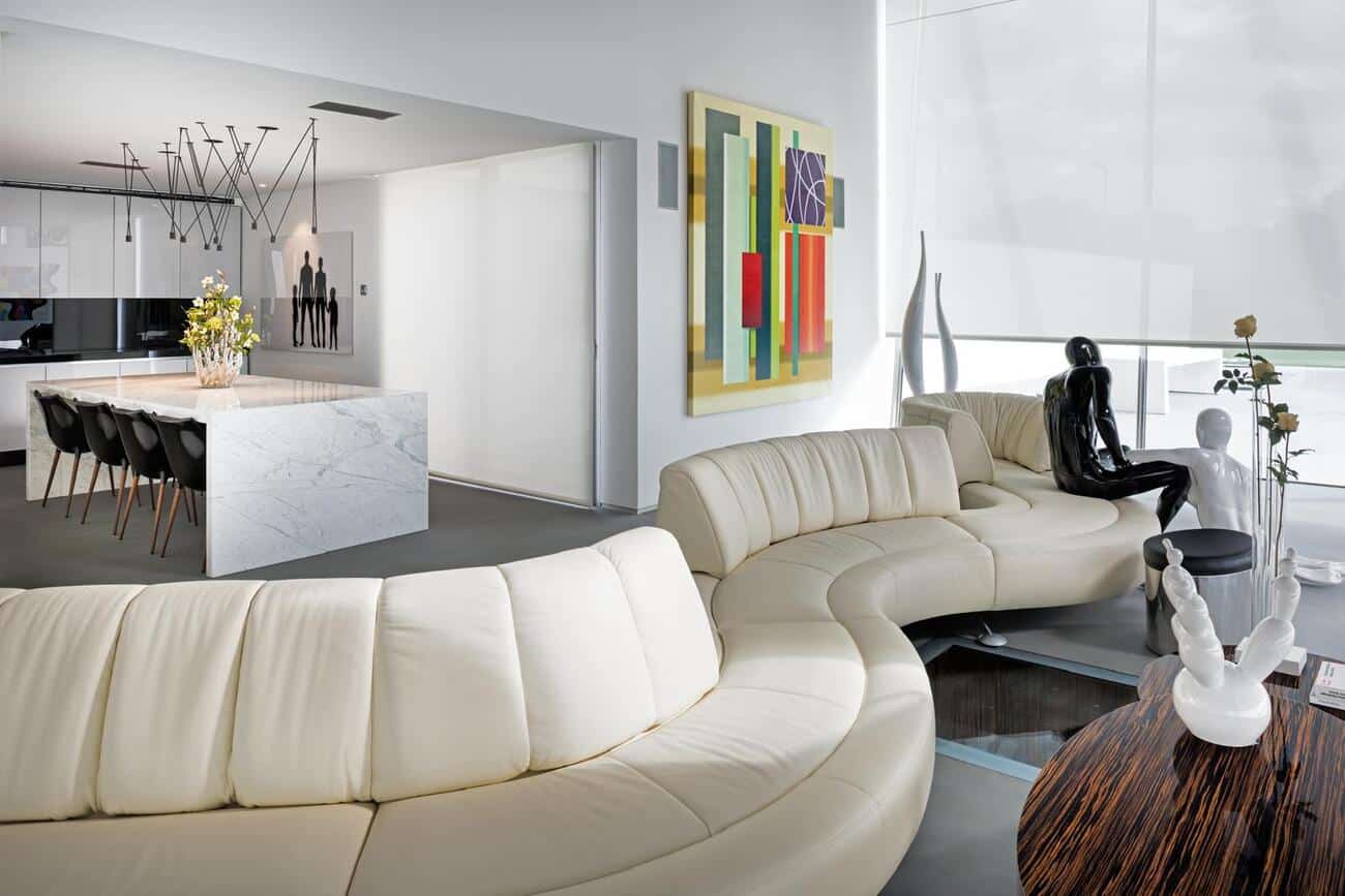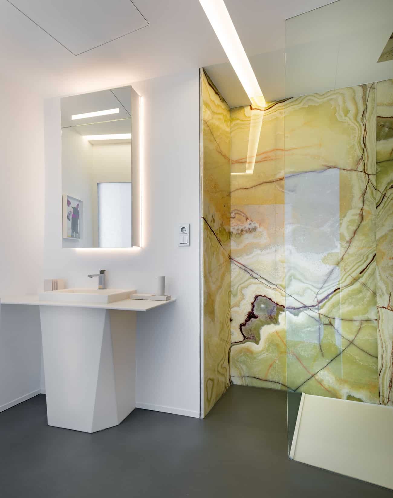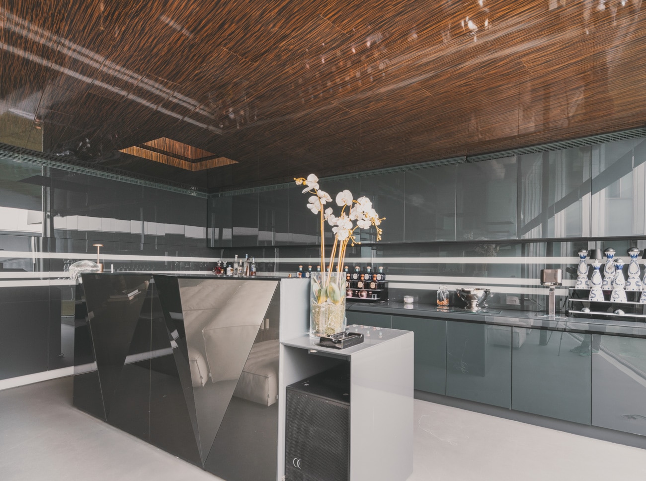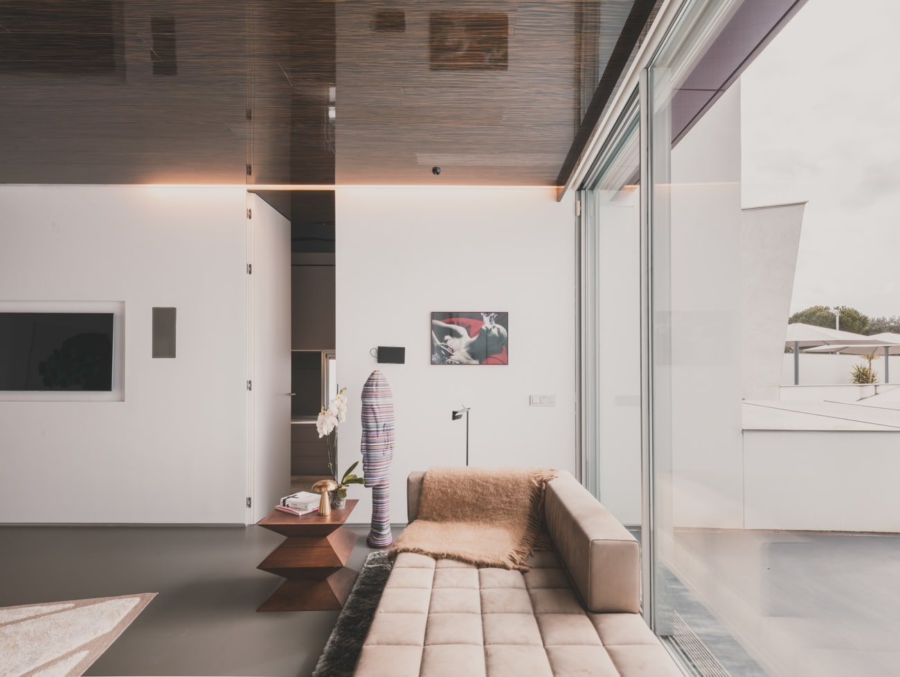 En el interior, piedra natural, metales, vidrios de distintas opacidades y maderas nobles como el ébano construyen espacios serenos, sofisticados y atemporales, donde cada estancia posee identidad propia sin perder la coherencia global.