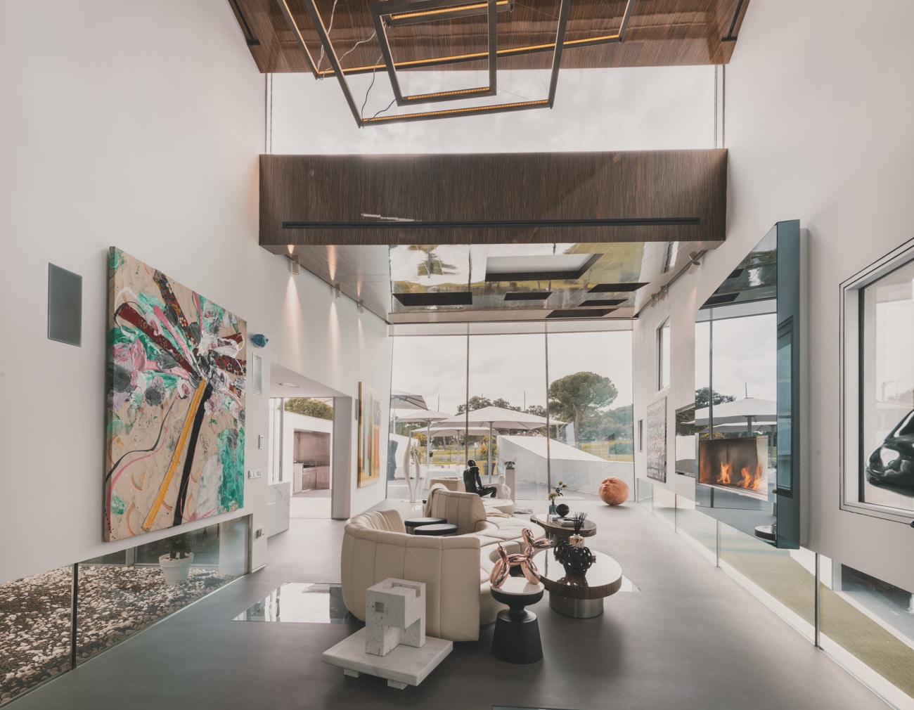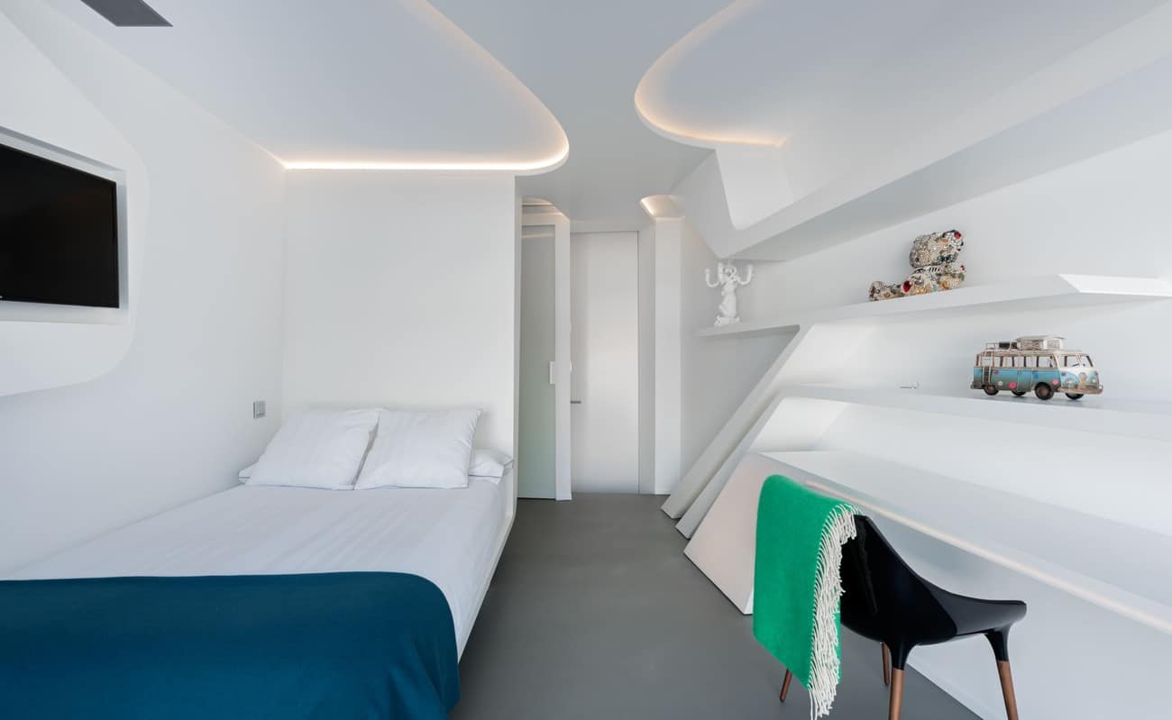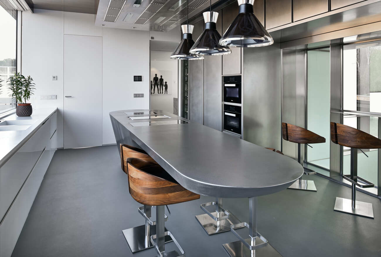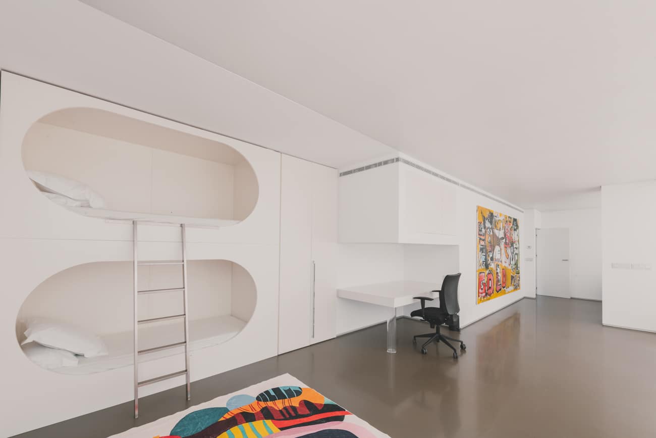 El salón–museo, con más de siete metros de altura y abundante luz natural, se convierte en el corazón de la casa, un espacio donde arte, arquitectura y vida cotidiana conviven en equilibrio. La cocina, diseñada en exclusiva por Ferran Adrià, se plantea como una pieza escultórica integrada en la arquitectura; una estructura de acero donde cocinar se transforma en una experiencia creativa, social y sensorial.