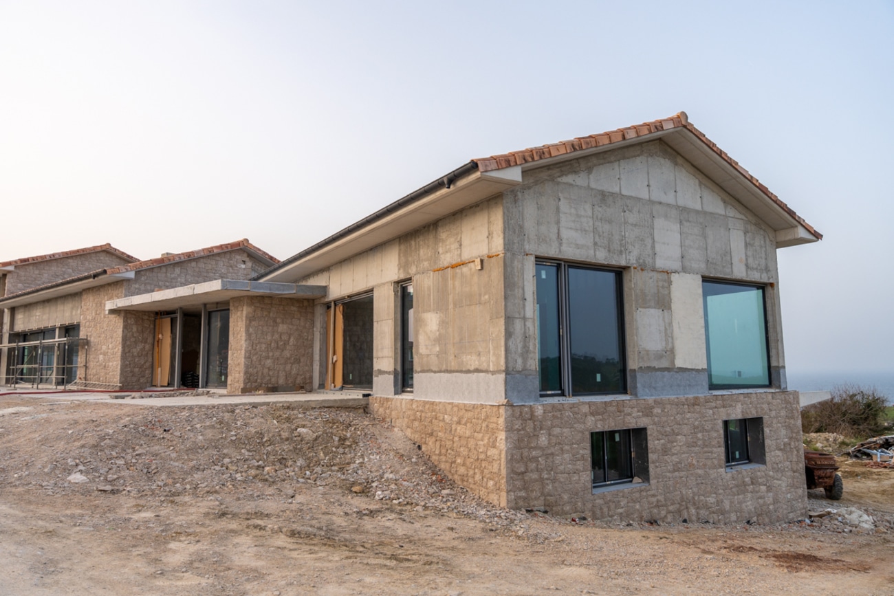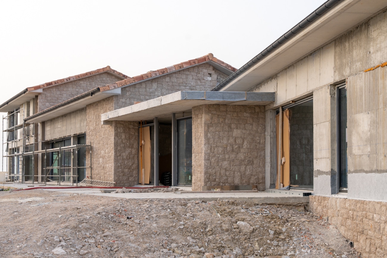 La arquitectura combina líneas limpias y proporciones equilibradas con el uso de materiales nobles, donde la piedra natural define el carácter de la casa y garantiza una integración respetuosa con el entorno.